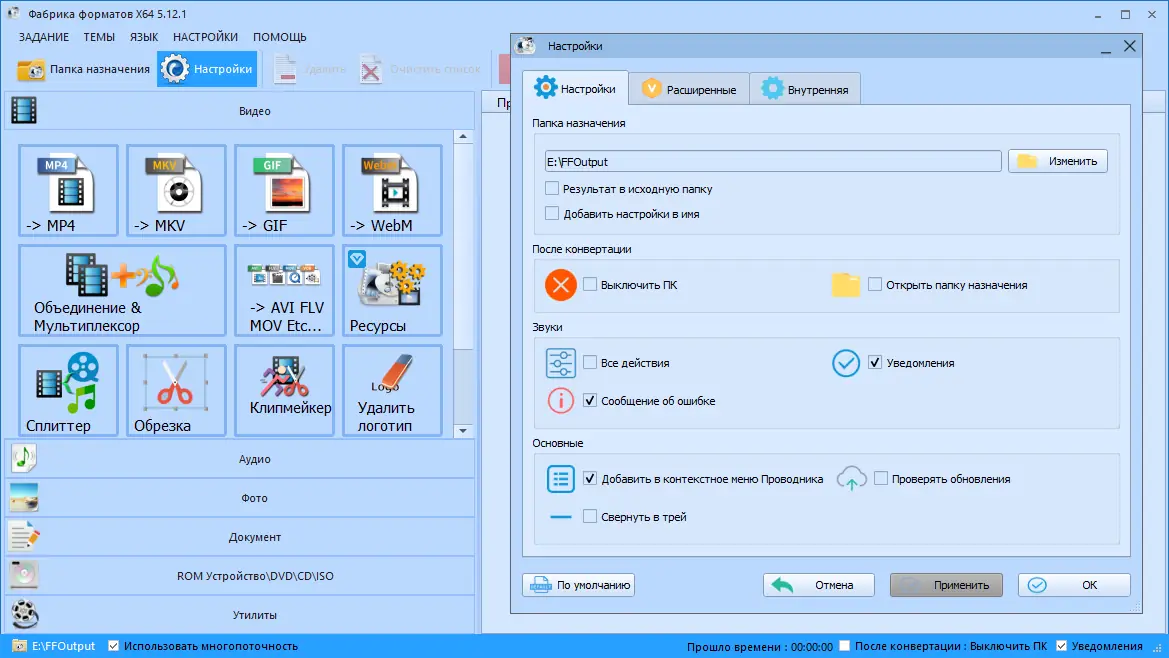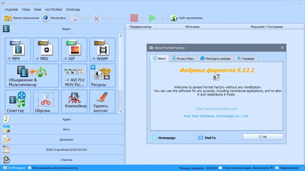 Format Factory — это не просто конвертер, а полноценный центр обработки мультимедиа, объединяющий множество функций в одном приложении.