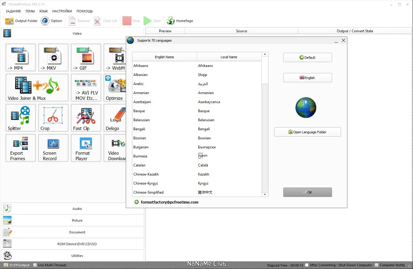 - Поддержка более чем 60 языков, включая русская версия интерфейса