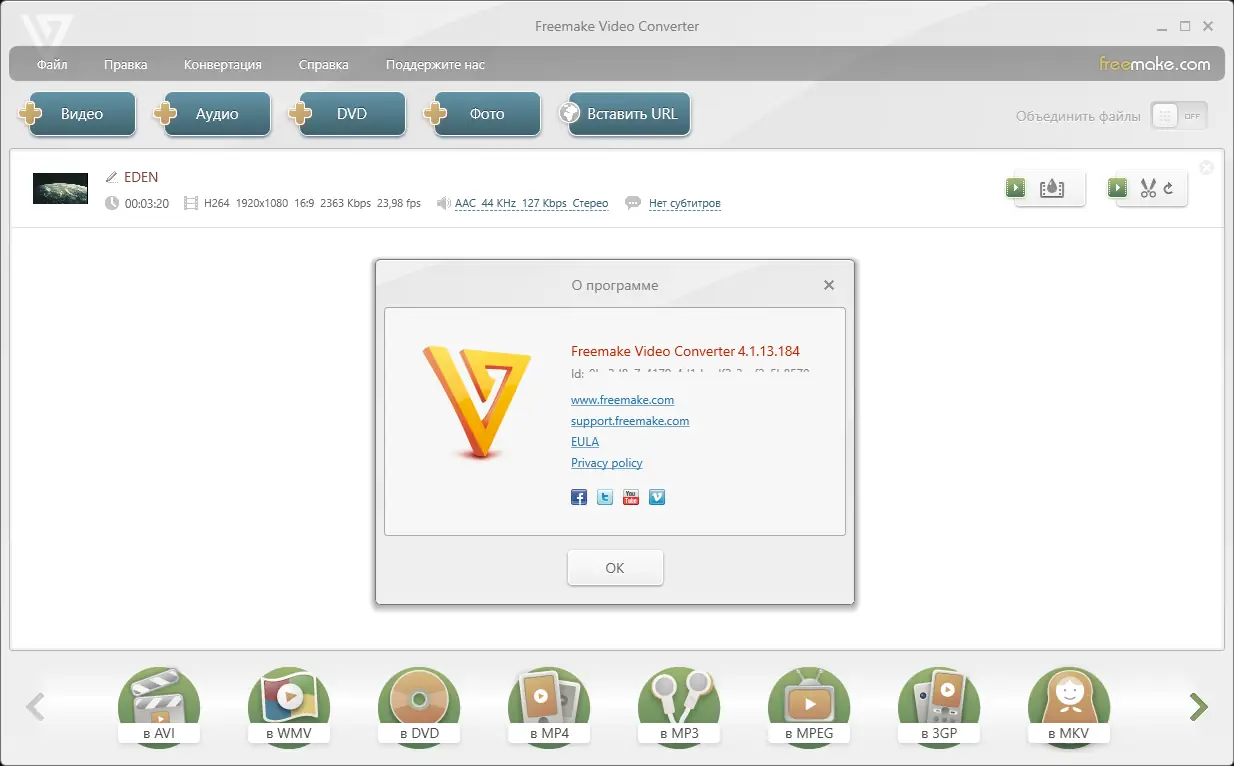 Freemake Video Converter — это мощный инструмент для конвертации видео в более чем 500 форматов, включая MP4, AVI, MKV, а также поддержка аудио и DVD. Программа позволяет редактировать файлы, извлекать звук, создавать слайд-шоу и записывать диски. Подходит как для новичков, так и для пользователей с опытом.