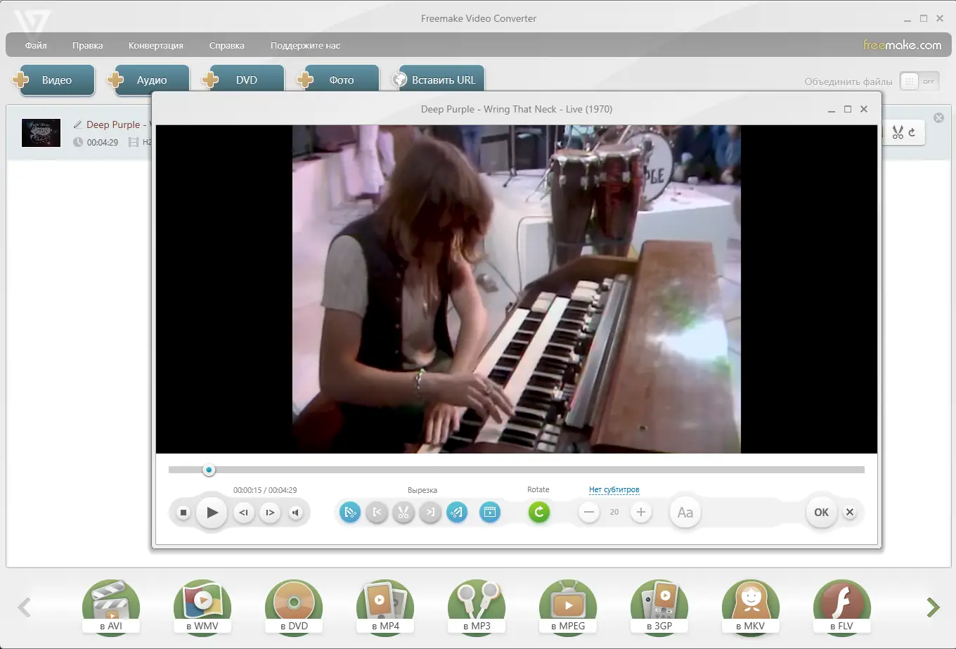 Freemake Video Converter — это универсальное приложение, разработанное для быстрого и качественного преобразования видеоданных. Программа поддерживает широкий спектр форматов, включая MP4, AVI, MKV, FLV, 3GP, SWF, MOV и многие другие, что делает её незаменимой при работе с разнородными медиафайлами. Она совместима с современными кодеками, такими как H.264, MPEG4 и AAC, обеспечивая высокую скорость обработки без потери качества изображения и звука.