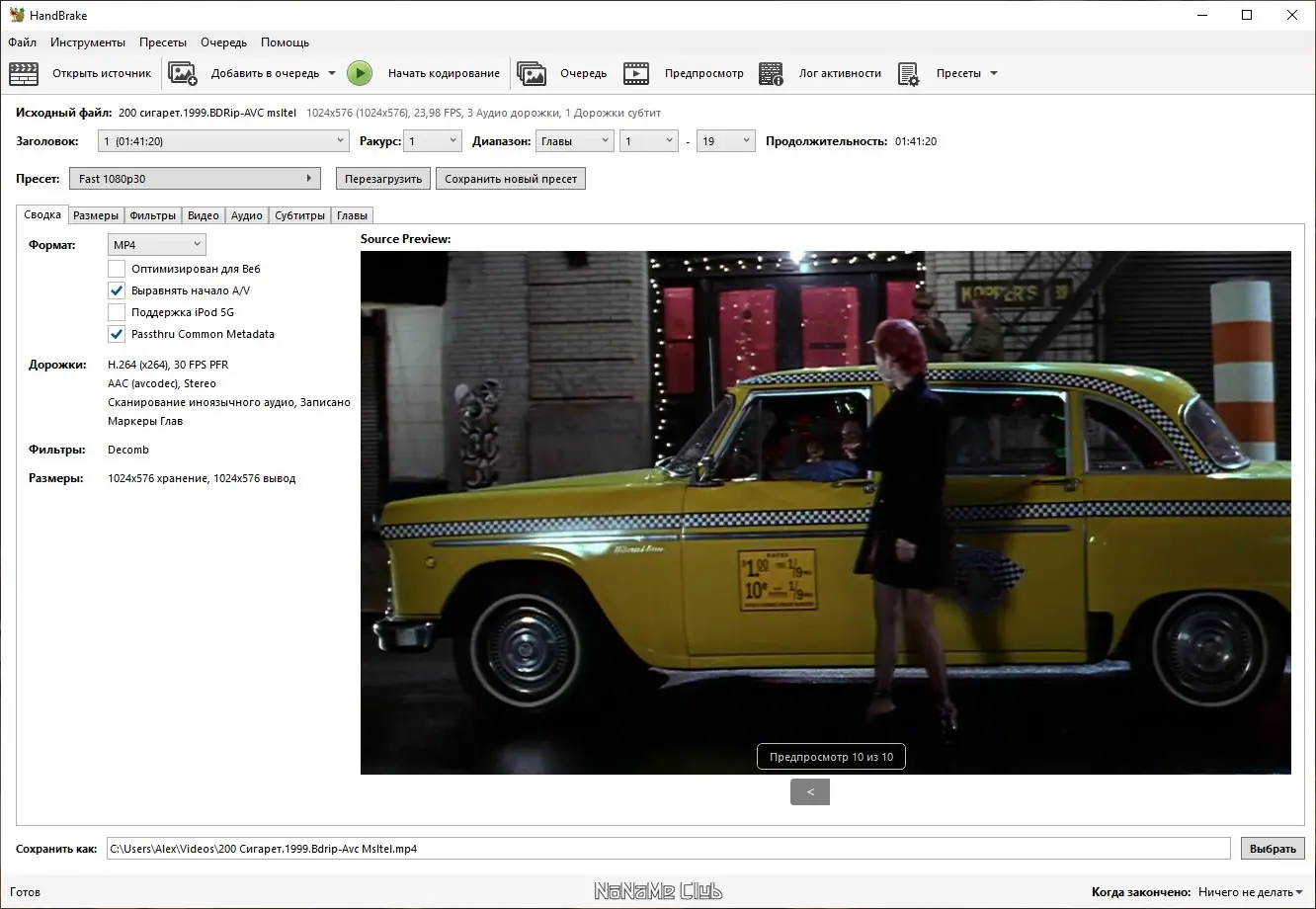 Работа с HandBrake