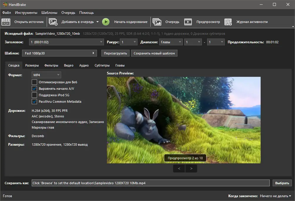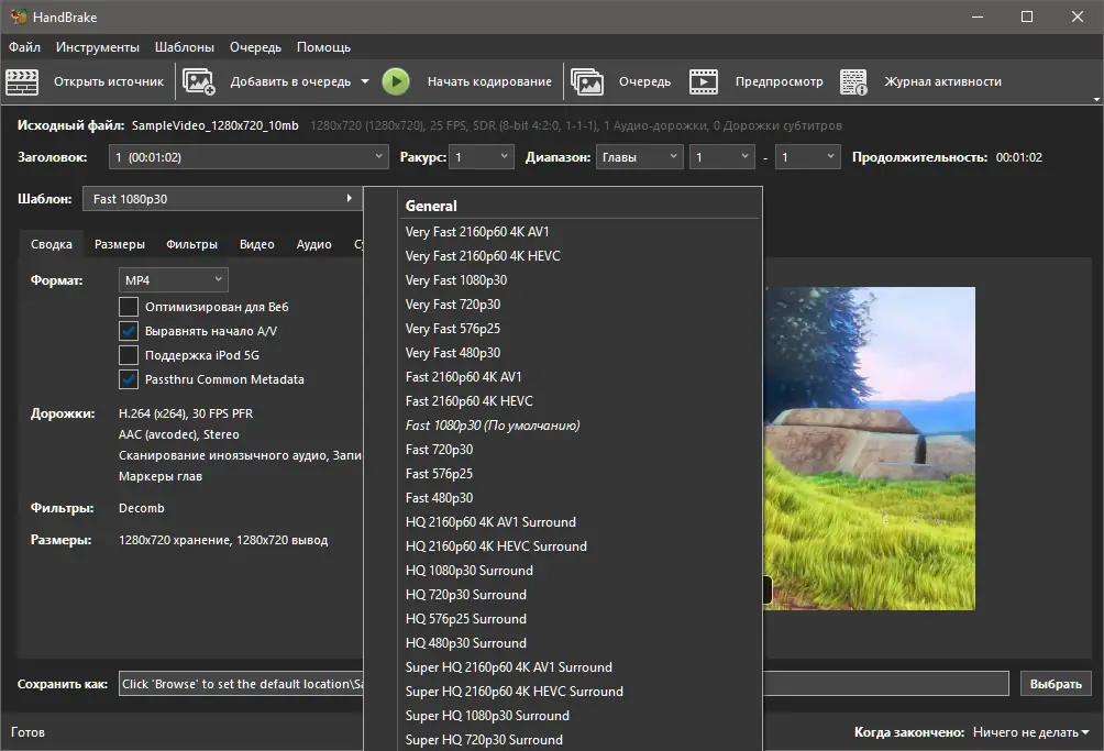 Работа с HandBrake