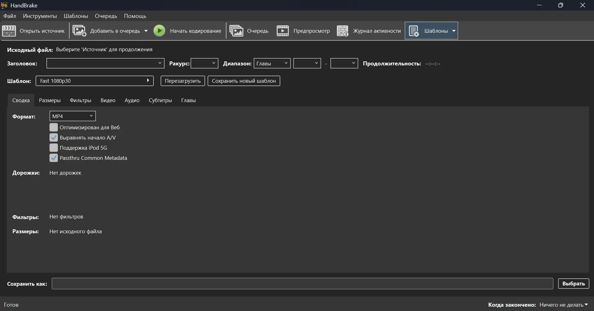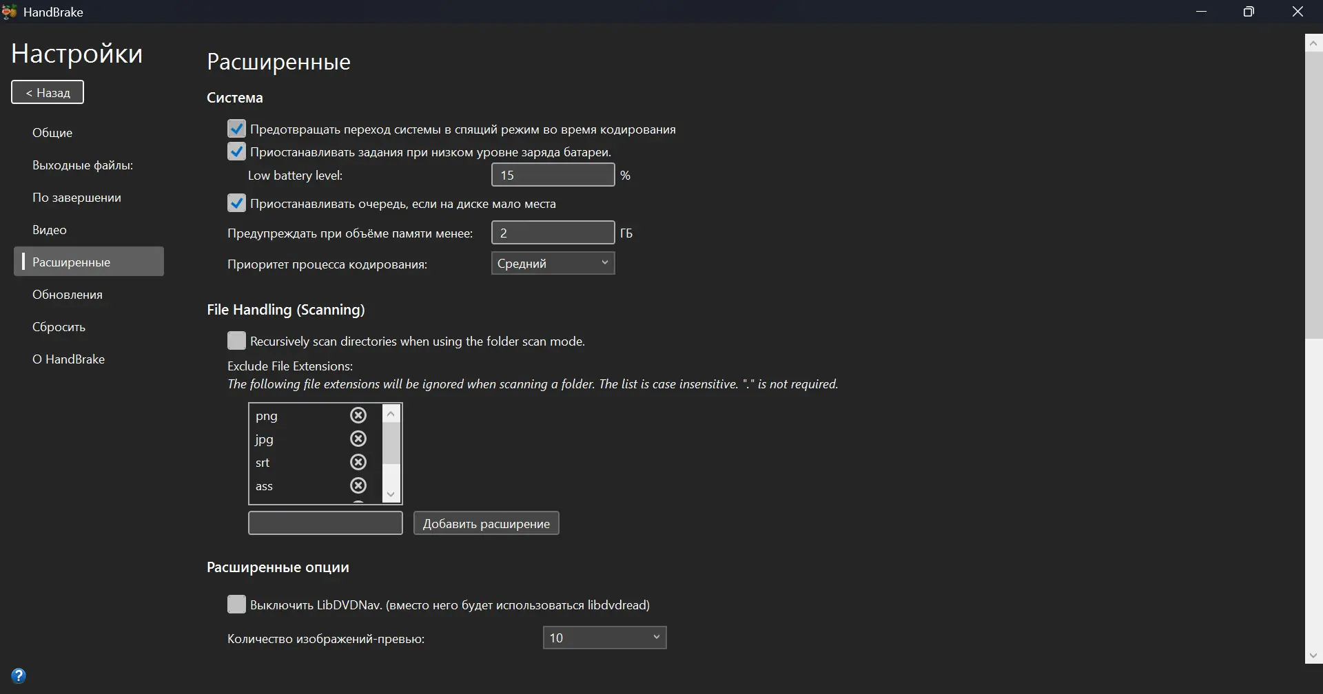 Работа с HandBrake
