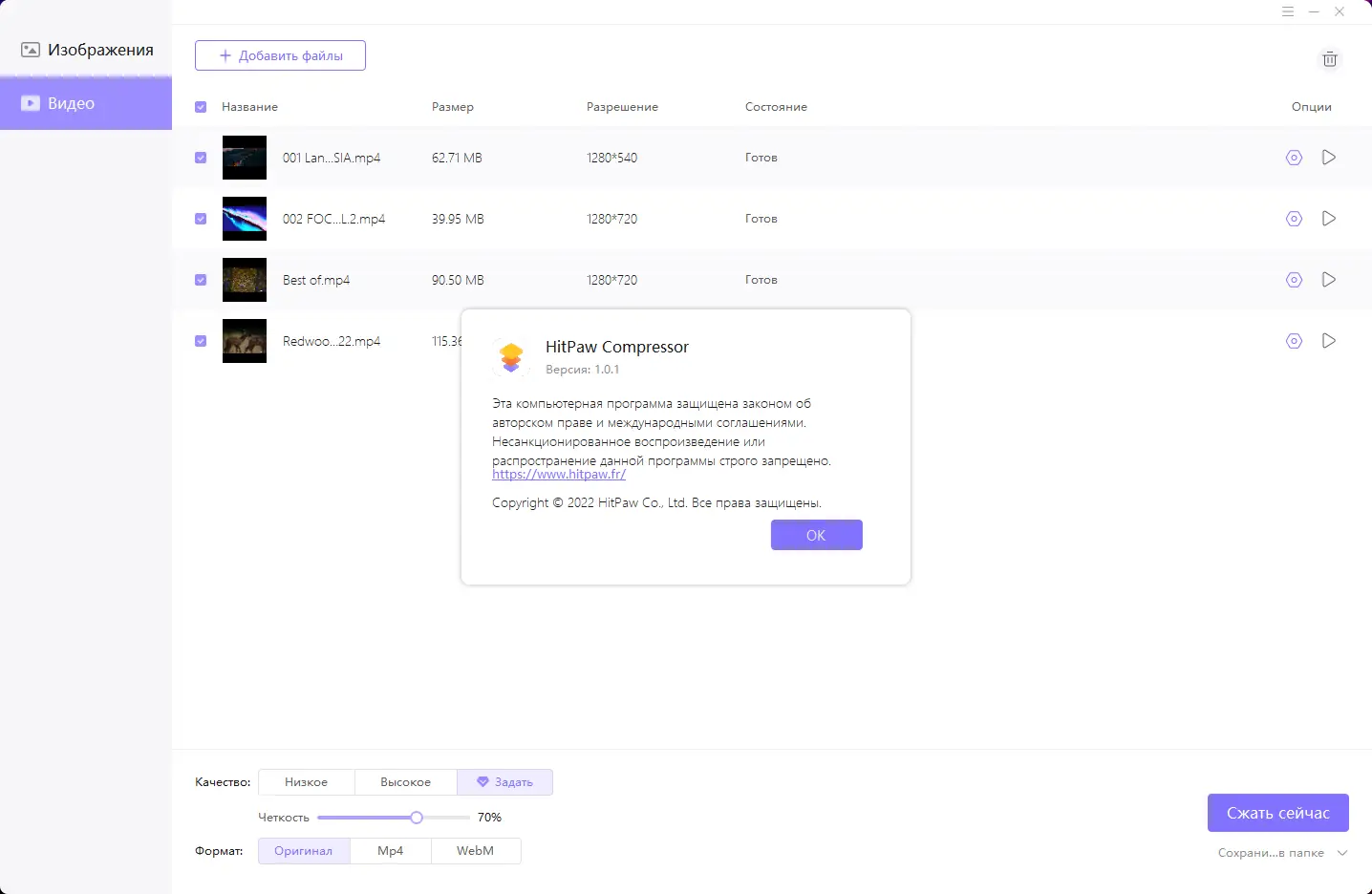 Работа с HitPaw Compressor