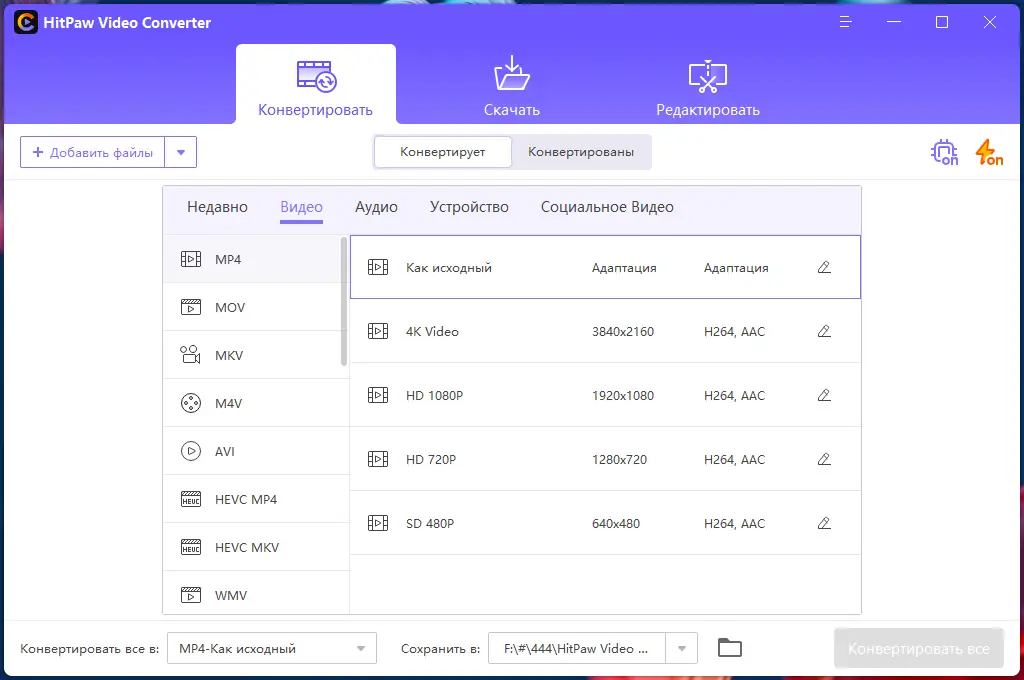 - Поддержка более 800 видео- и аудиоформатов для конвертации