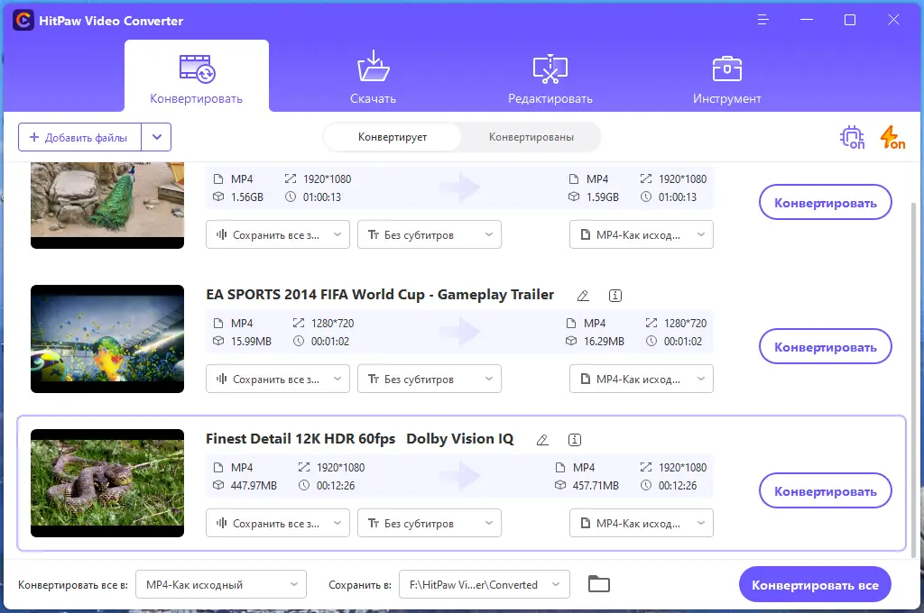 Работа с HitPaw Video Converter