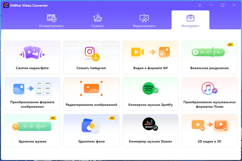 HitPaw Video Converter — это многофункциональный инструмент, предназначенный для преобразования видео и аудио файлов в широкий спектр форматов. Он поддерживает работу с высоким разрешением, включая HD и SD, и оптимизирован для использования на различных устройствах. Программа также позволяет извлекать аудиодорожки, редактировать видеоматериалы и скачивать контент с более чем 1000 онлайн-платформ.
