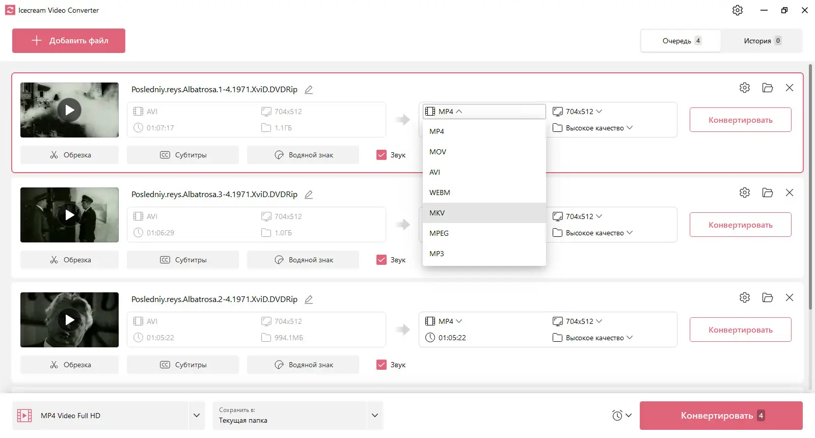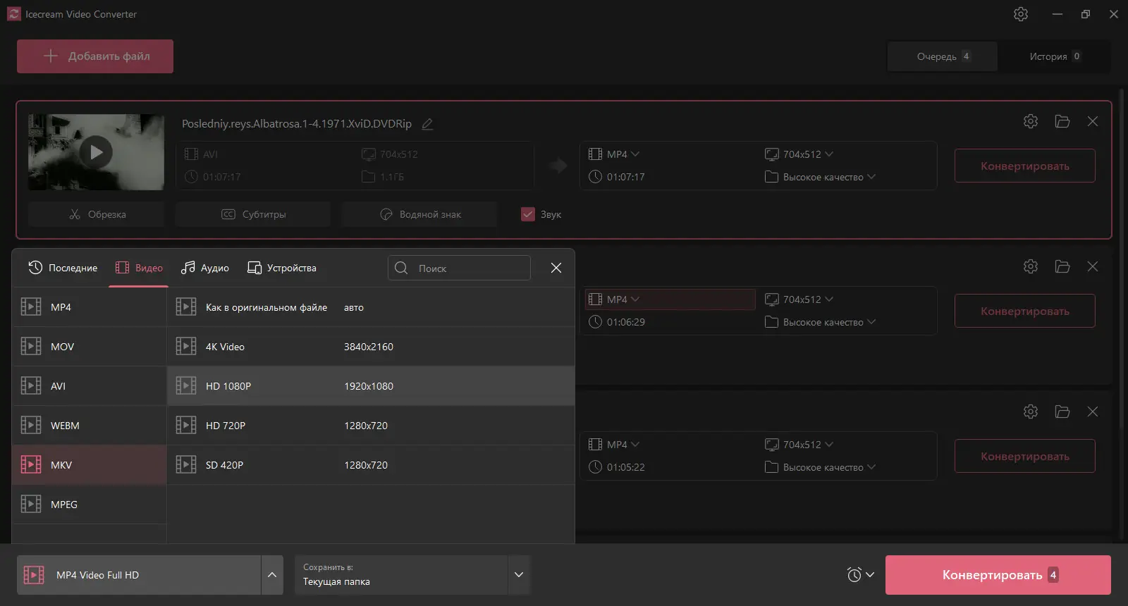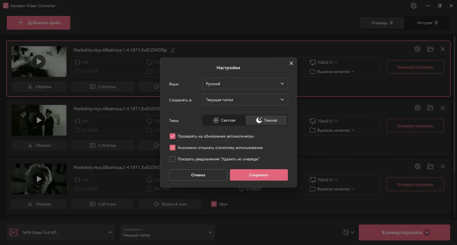 Работа с Icecream Video Converter