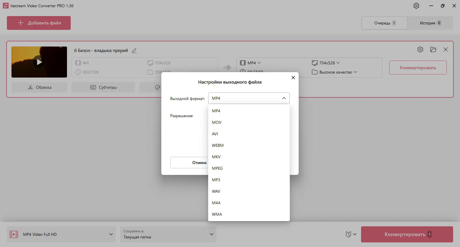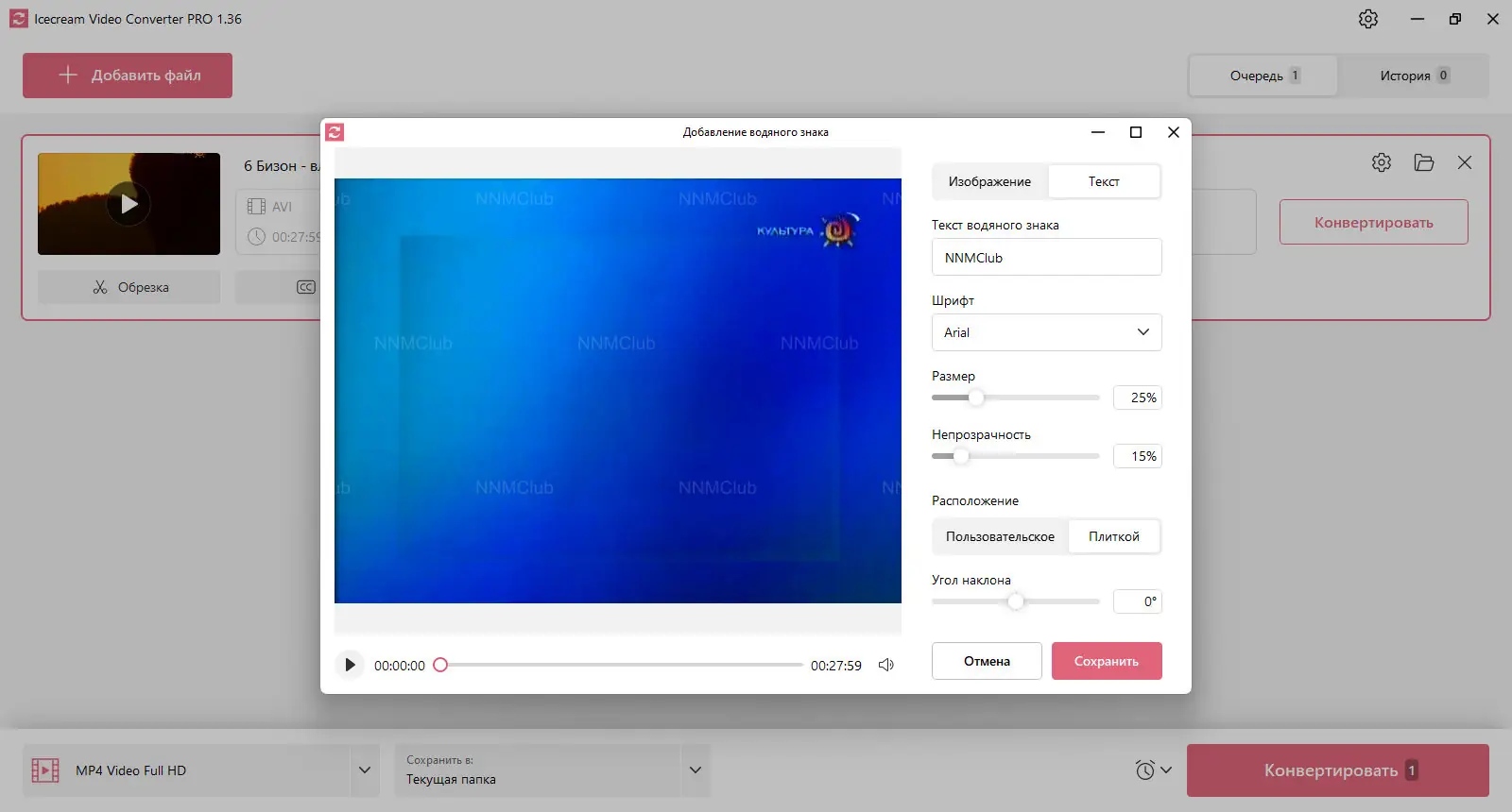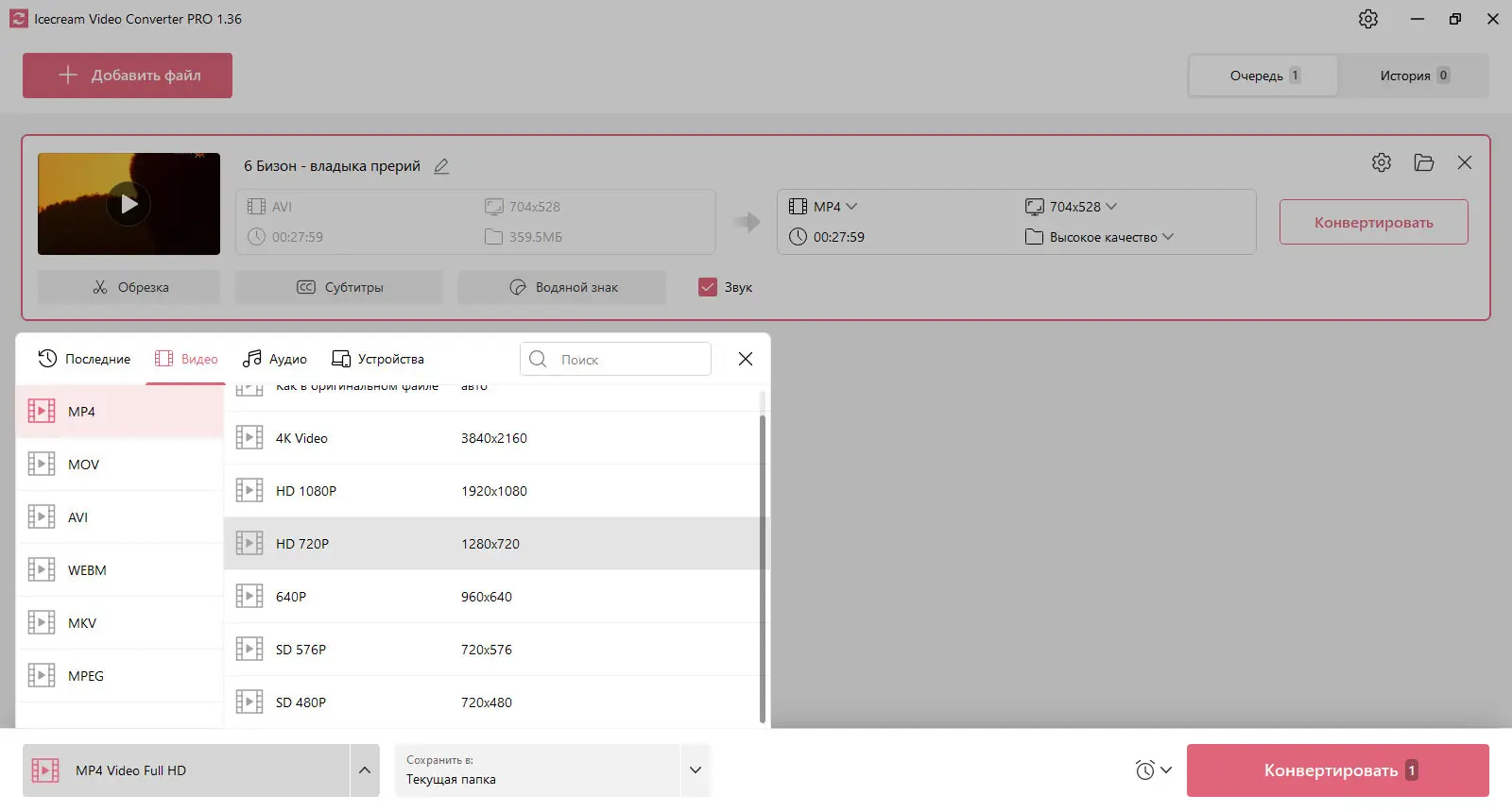 - Удобные инструменты редактирования: обрезка, водяные знаки, отключение звука и предустановленные профили устройств.