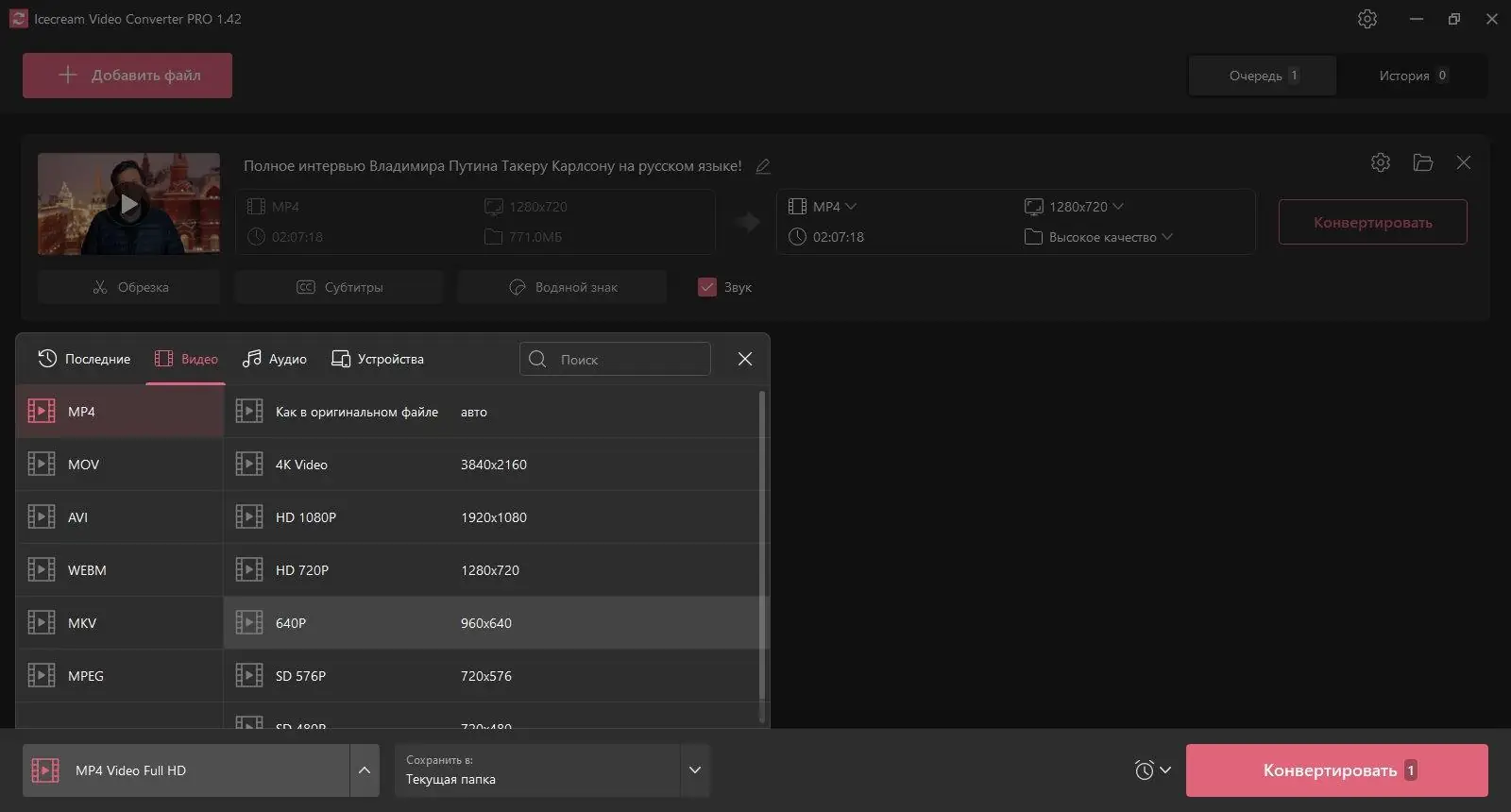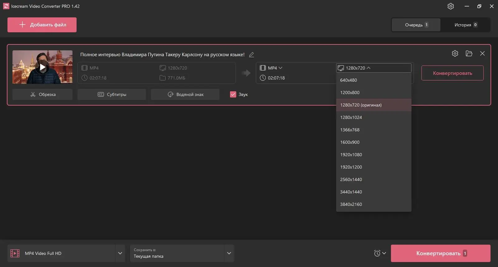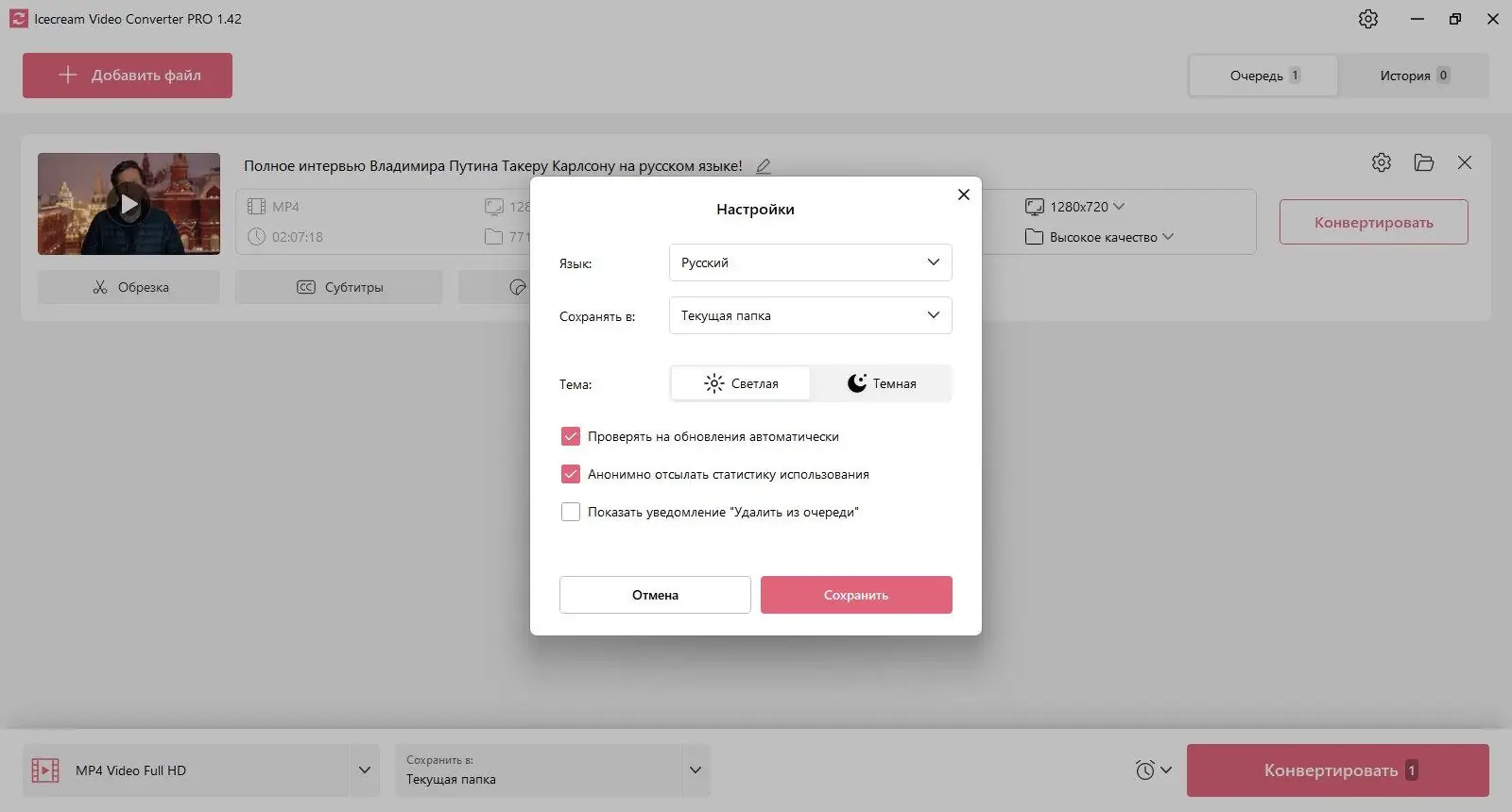 Работа с Icecream Video Converter