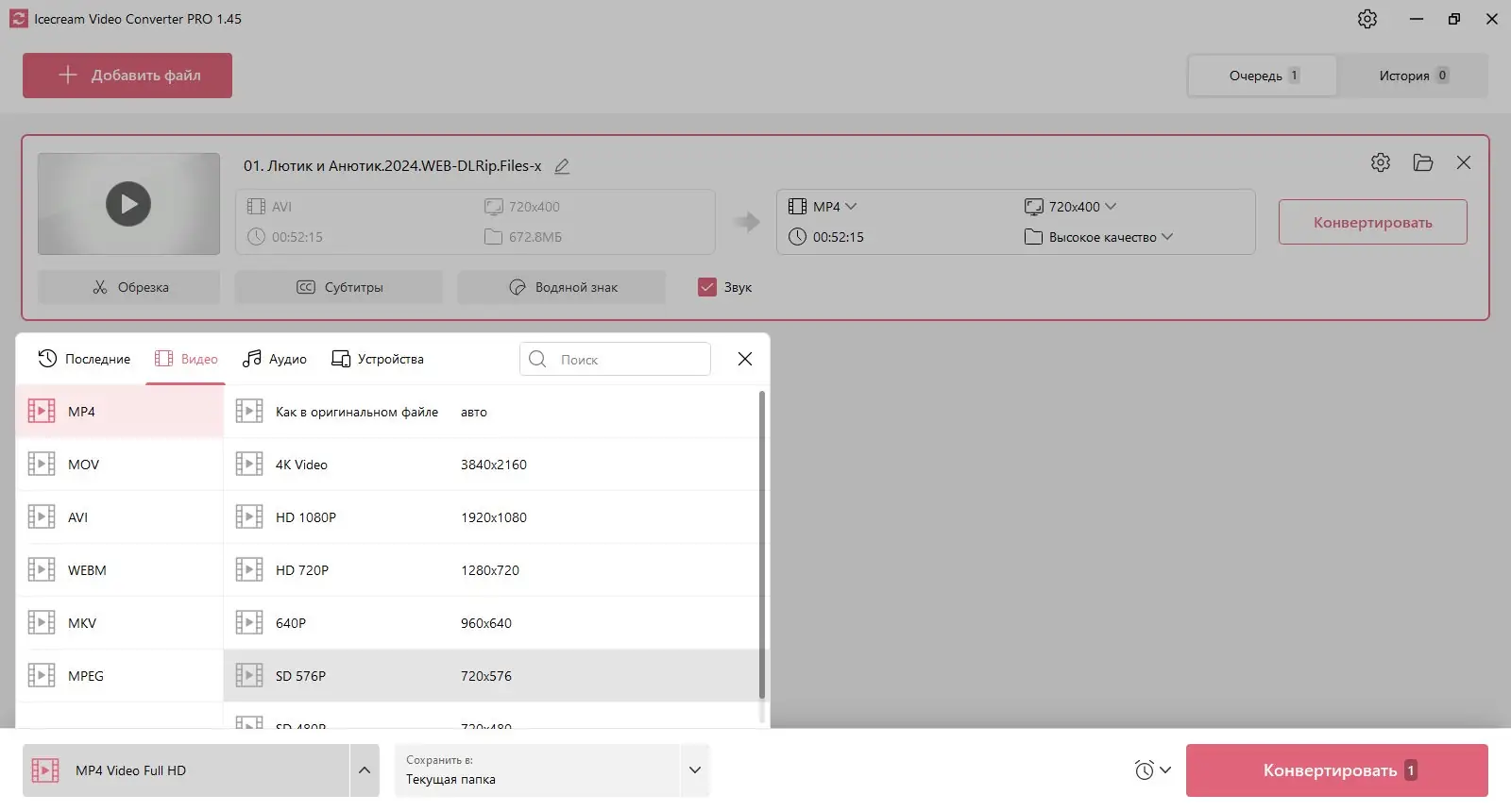 - Возможность конвертации видео в аудио, включая извлечение звука в формате MP3.