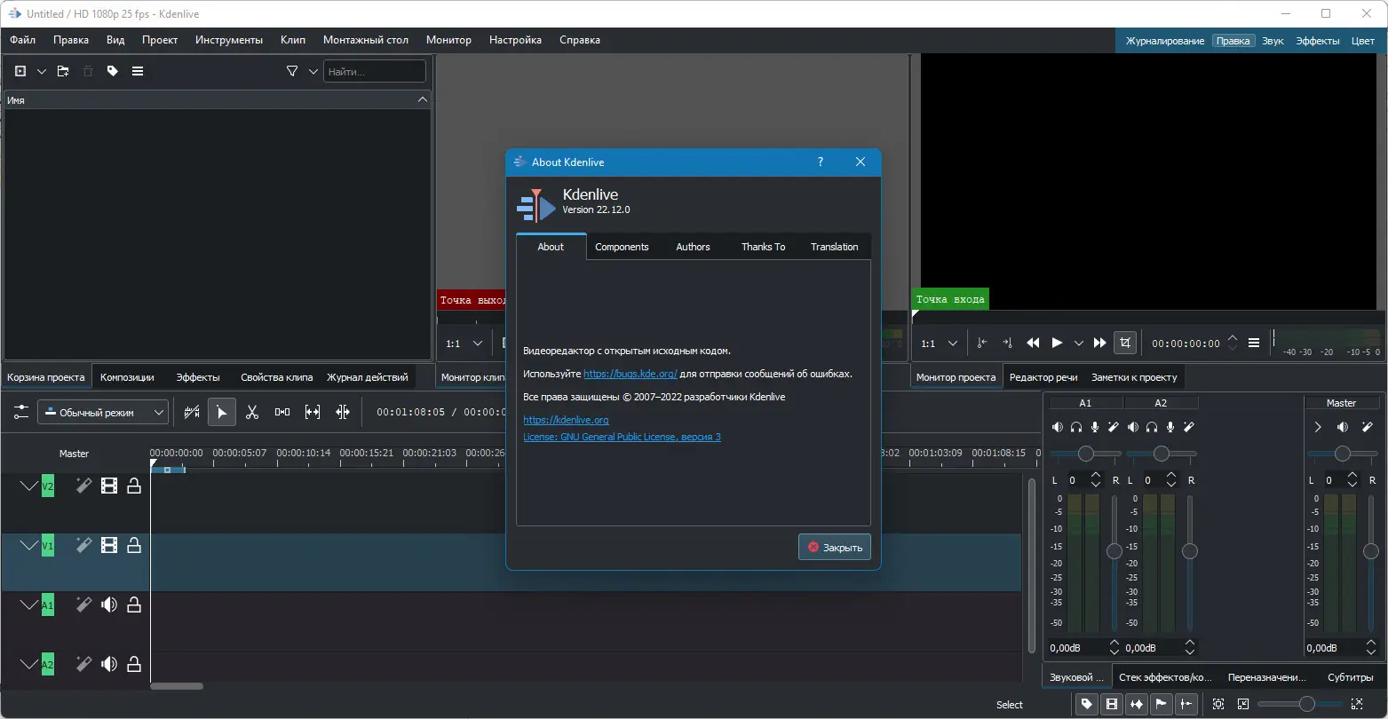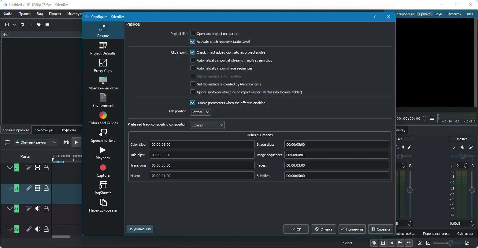 Kdenlive — это мощный и гибкий видеоредактор с открытым исходным кодом, предназначенный для создания и обработки видео на высоком уровне. Программа поддерживает широкий спектр форматов и предлагает инструменты, необходимые как новичкам, так и опытным монтажерам. Работа с проектами происходит в нелинейной временной шкале, что обеспечивает свободу при компоновке роликов.