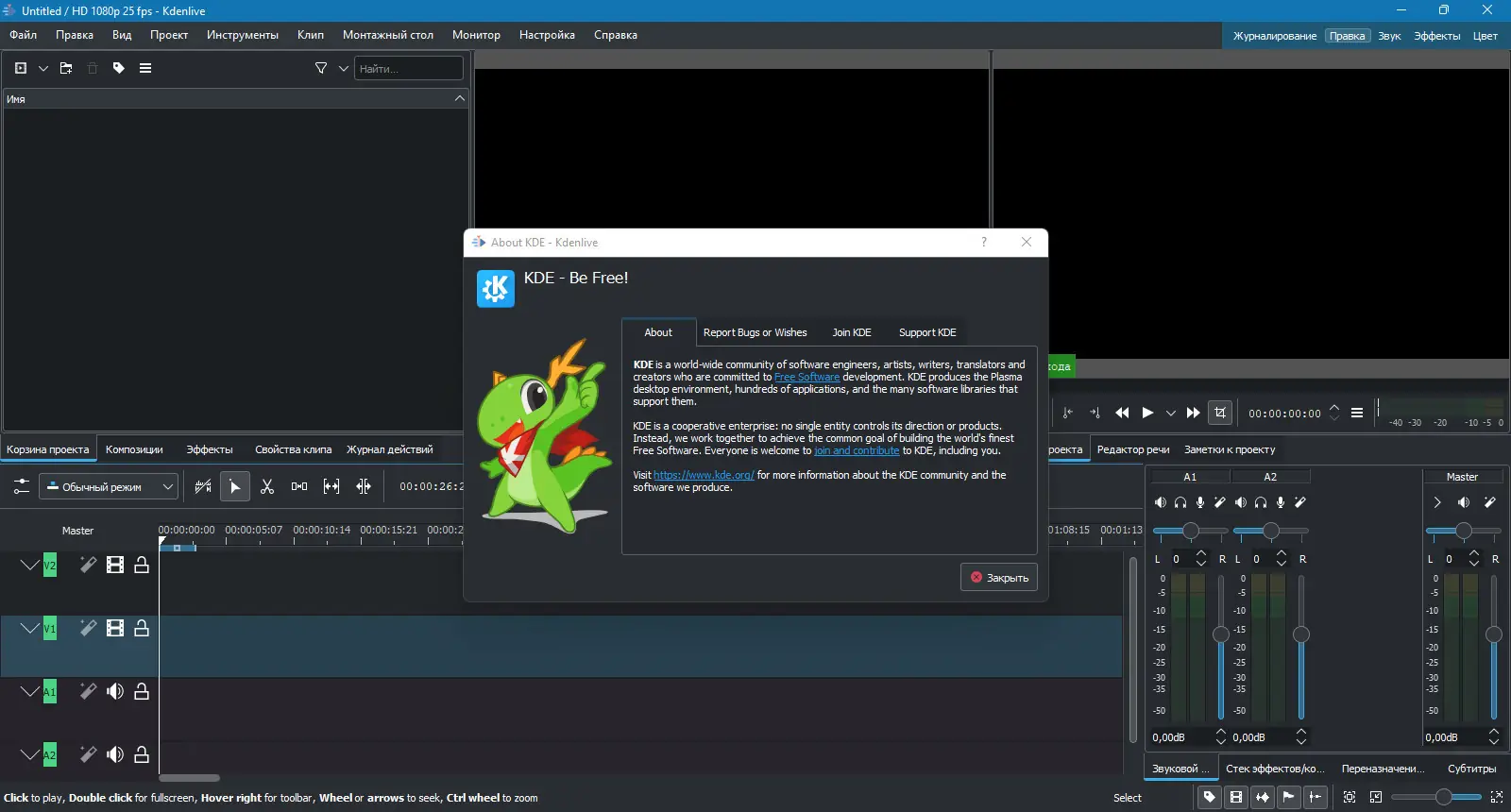 Kdenlive — это мощный и гибкий видеоредактор с открытым исходным кодом, предназначенный для нелинейного монтажа видео на компьютере. Программа подходит как для новичков, так и для опытных пользователей, предоставляя широкий набор инструментов для редактирования, наложения эффектов, работы с аудиодорожками и создания профессиональных видео. Благодаря поддержке множества форматов, многофункциональному интерфейсу и возможности полной настройки, она стала популярным выбором среди тех, кто хочет создавать качественный контент бесплатно.