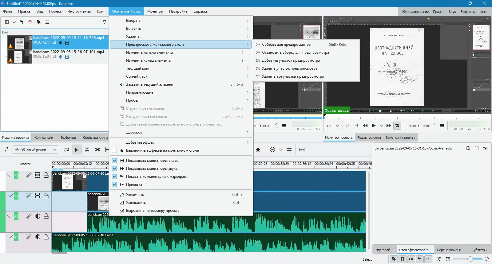 - Работа с многодорожечными проектами, позволяющая одновременно редактировать несколько видеодорожек и аудиодорожек.