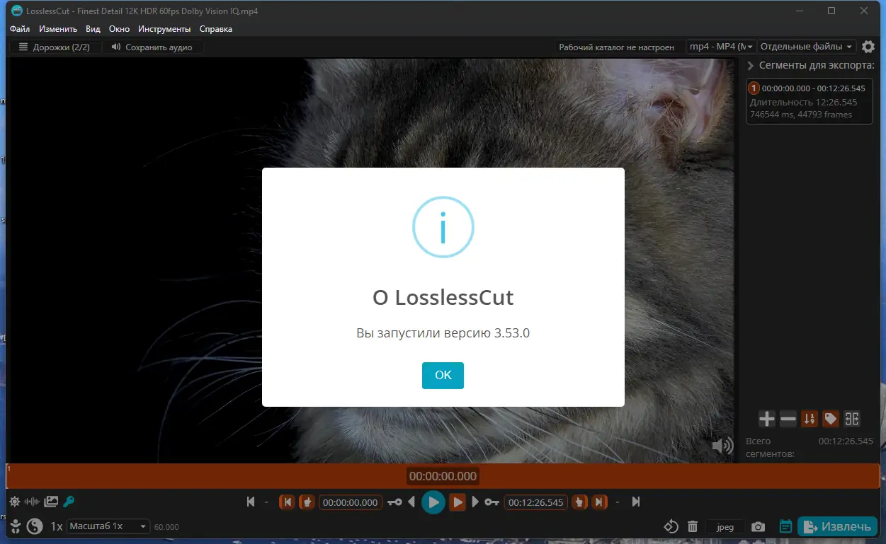 LosslessCut — это инструмент для быстрой и точной обрезки видео и аудио без перекодирования, позволяющий сохранить исходное качество медиафайлов. Программа идеально подходит для монтажа коротких фрагментов, извлечения сцен, создания превью и подготовки контента для дальнейшего редактирования. Благодаря использованию технологий FFmpeg и встроенному HTML5-проигрывателю, обработка происходит мгновенно и без потерь.