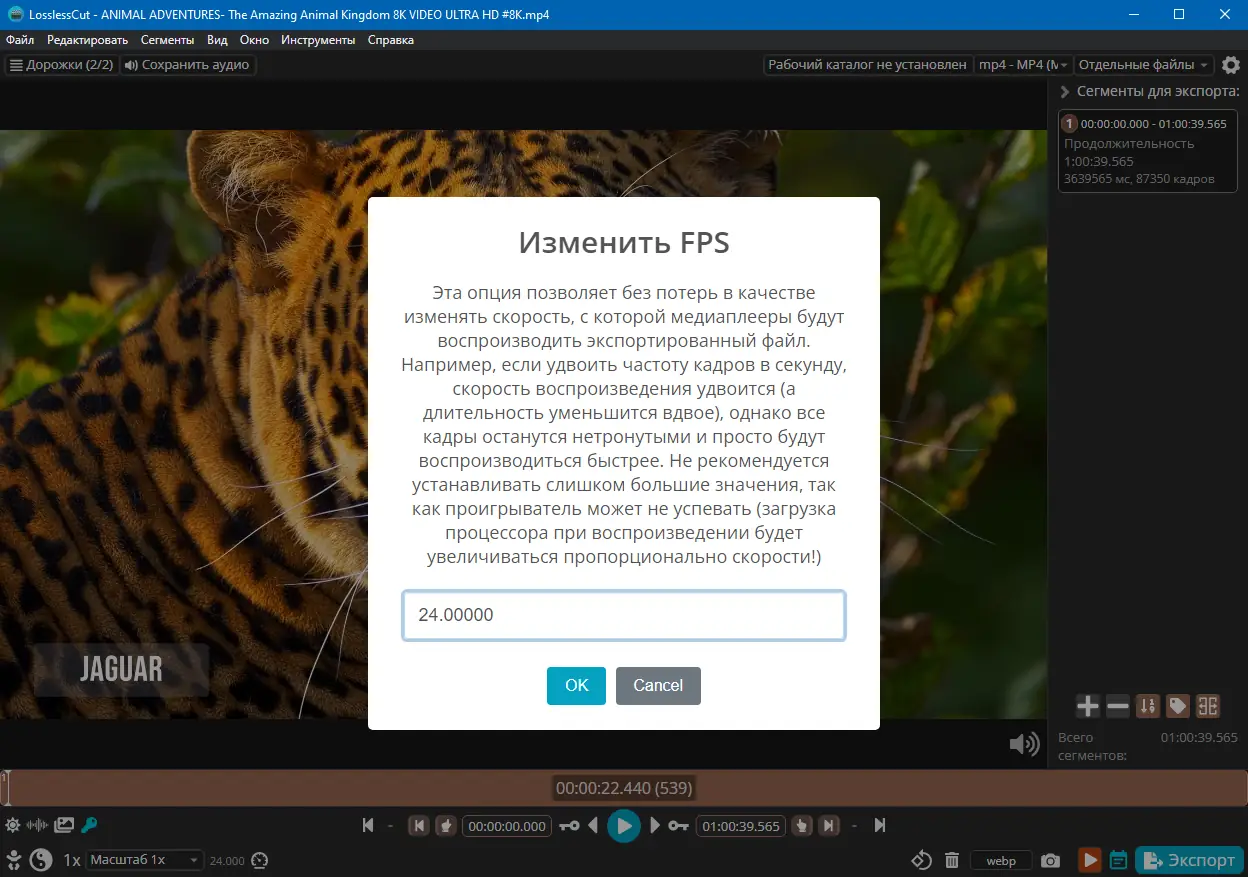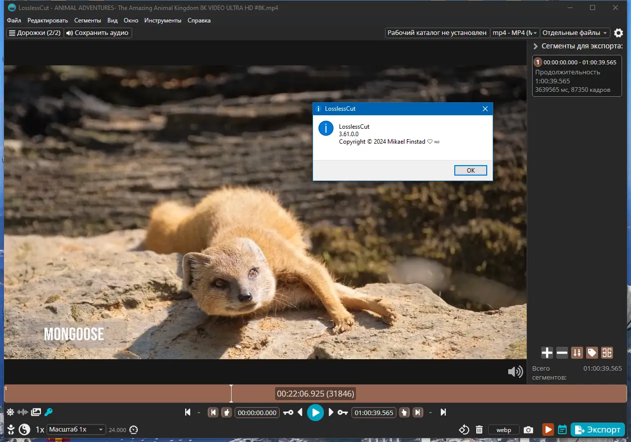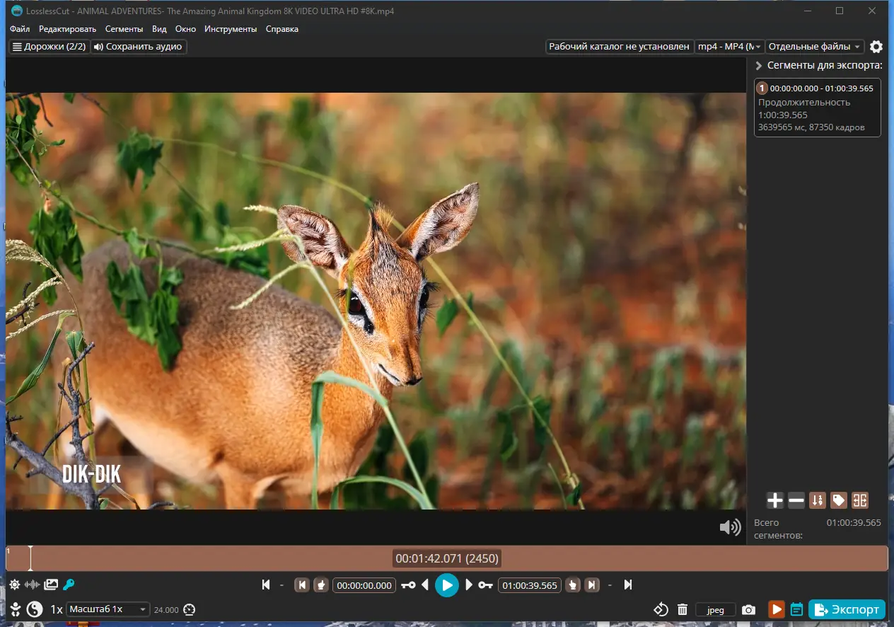 Поскольку обработка происходит без декодирования, LosslessCut демонстрирует высокую производительность даже на слабых компьютерах.
