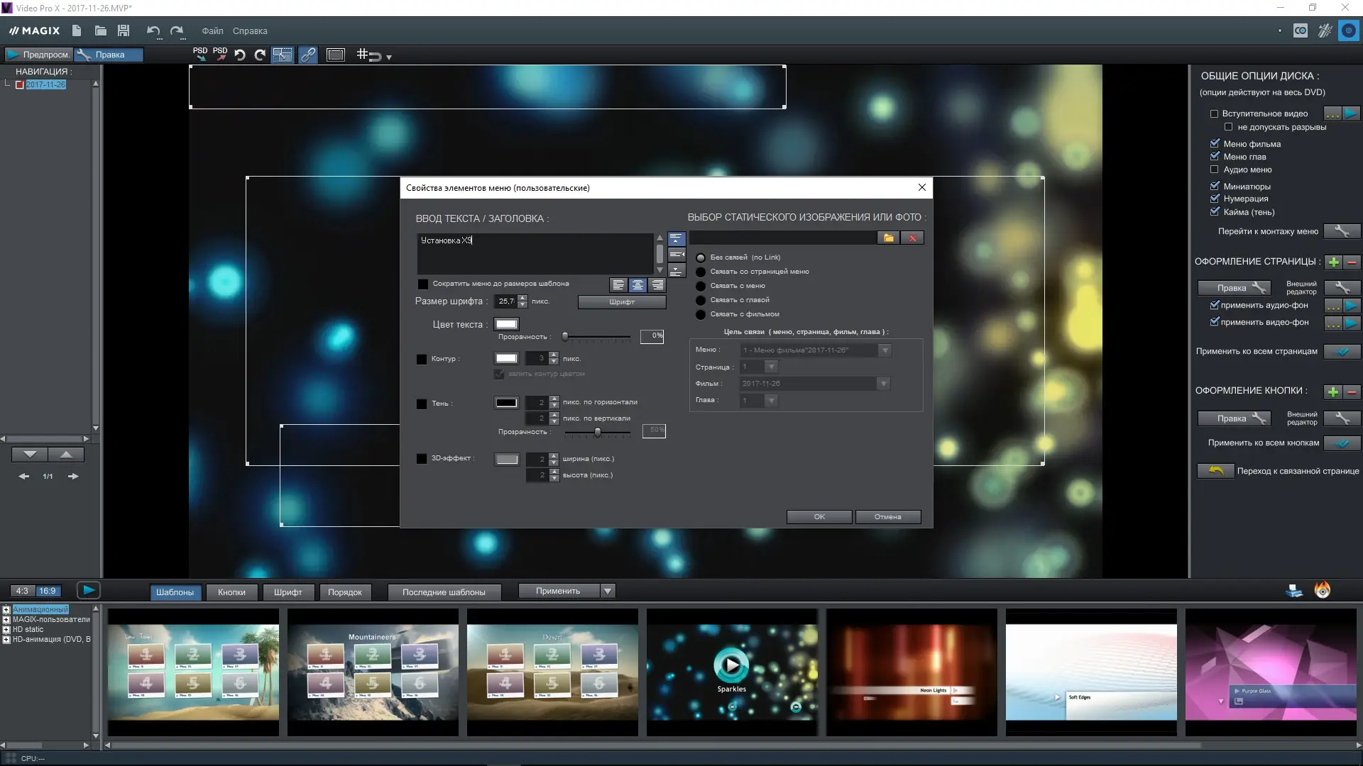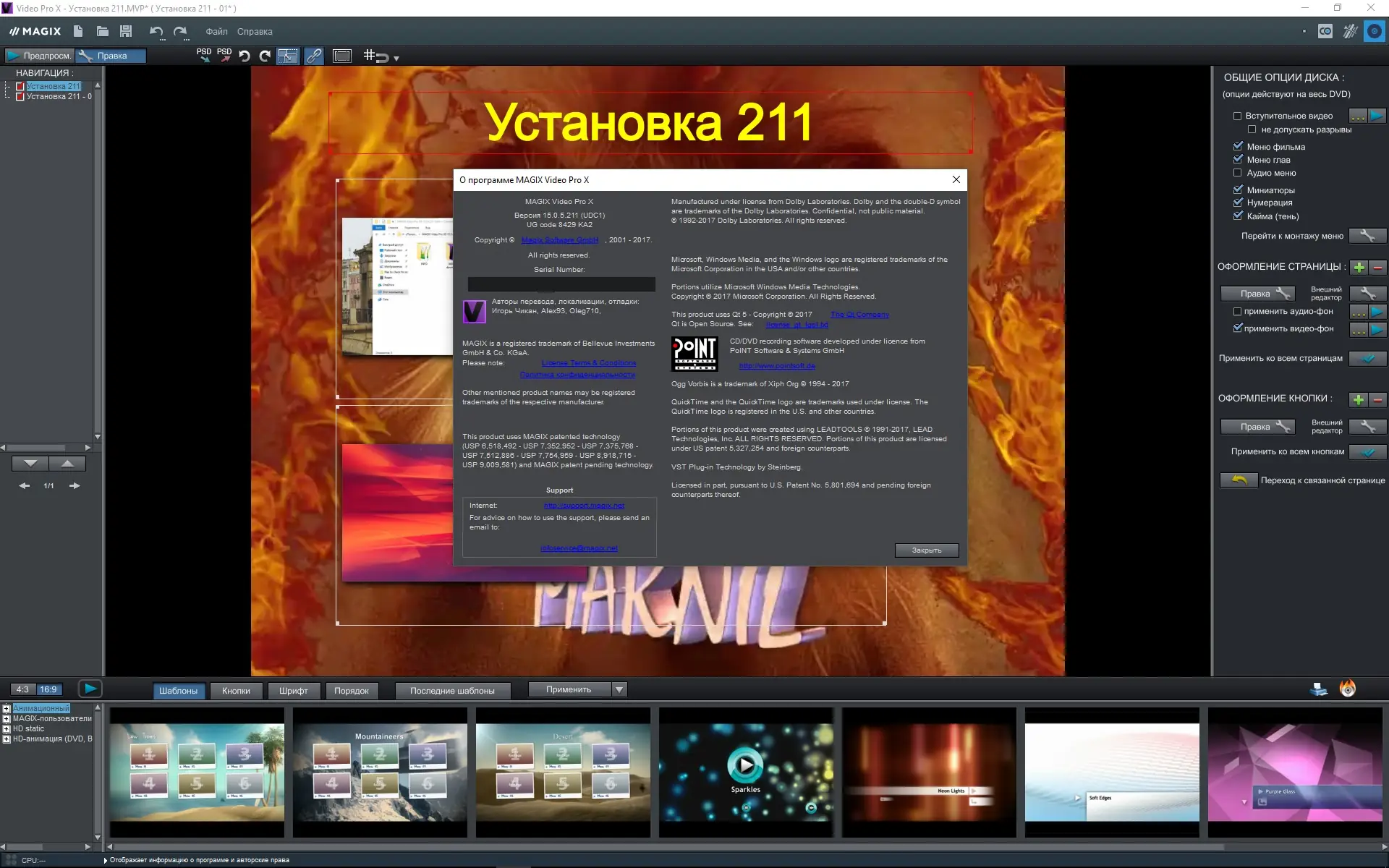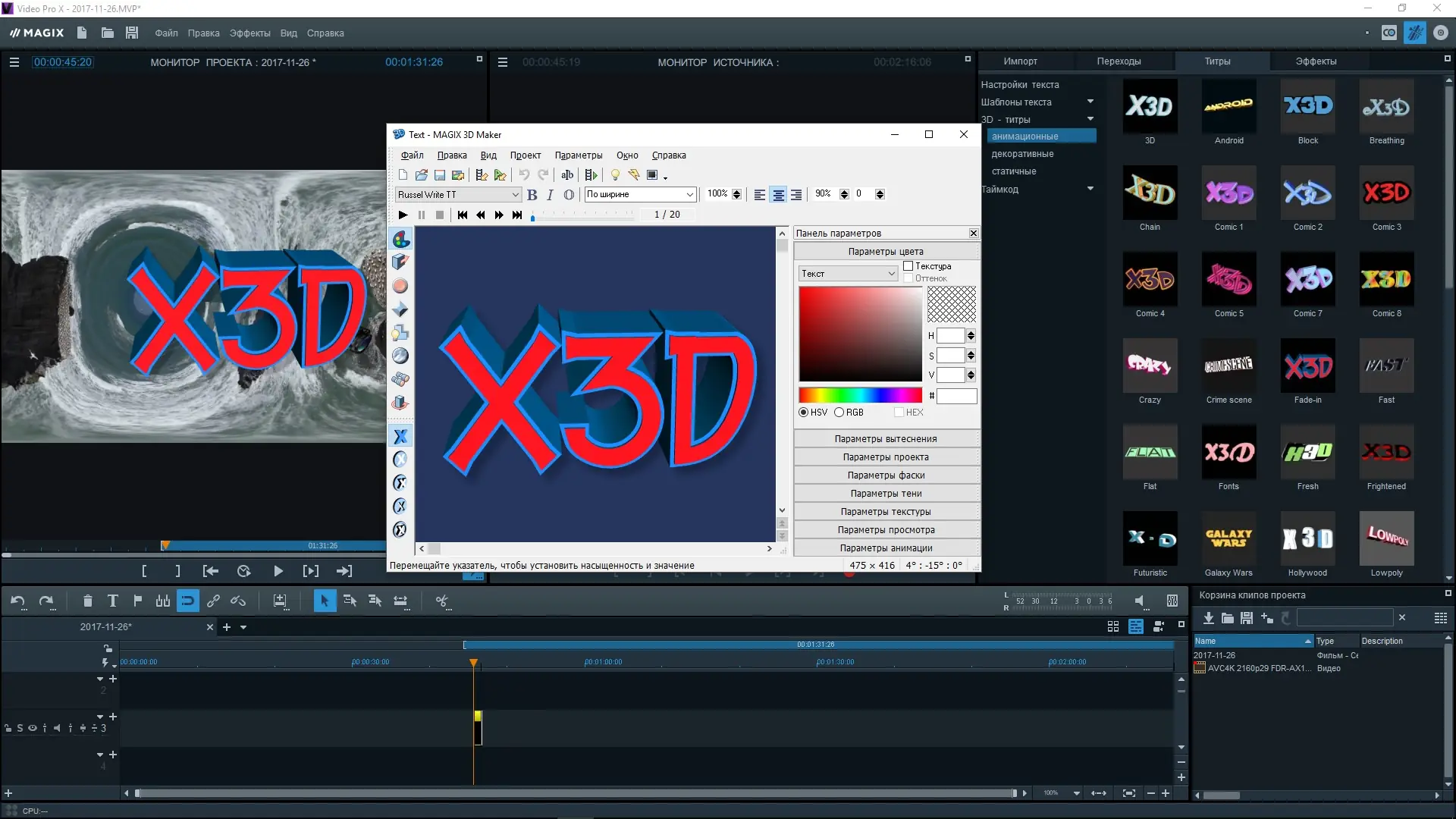 - Встроенные эффекты и переходы, включая анимированные титры, маски и композитные наложения.