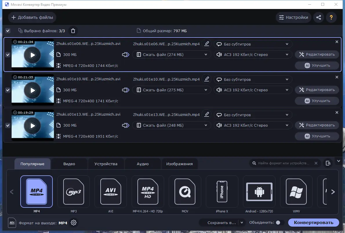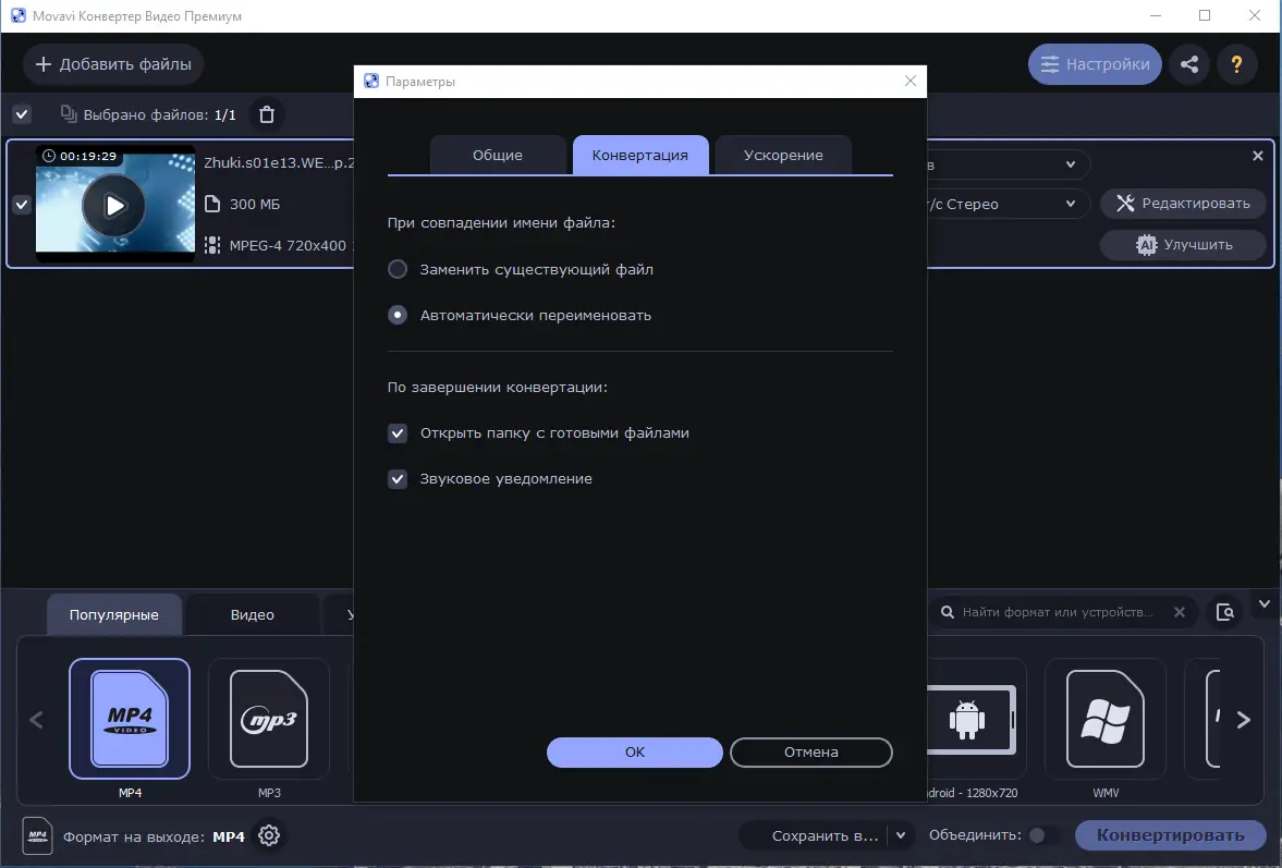 Работа с Movavi Video Converter