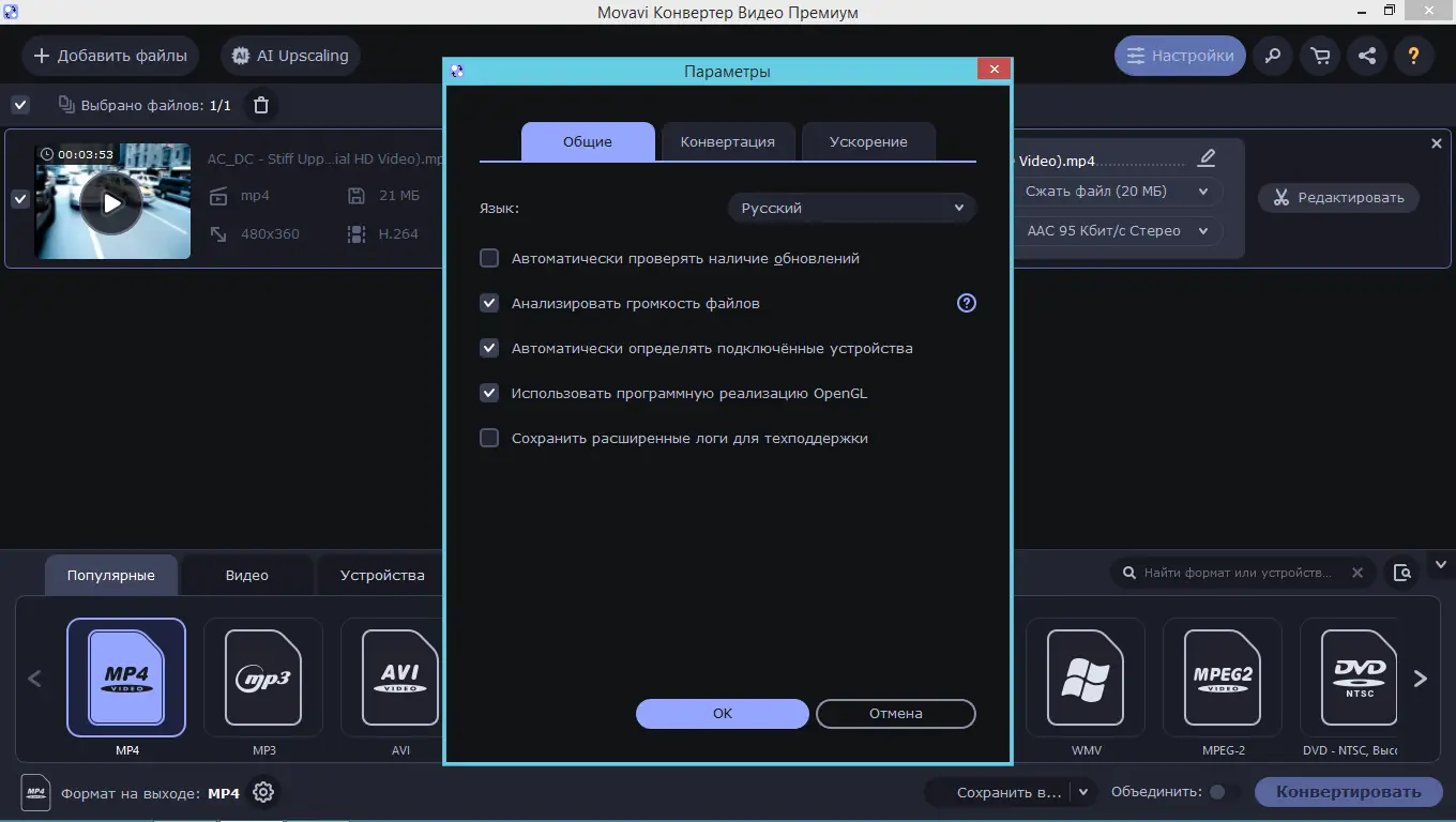 Работа с Movavi Video Converter