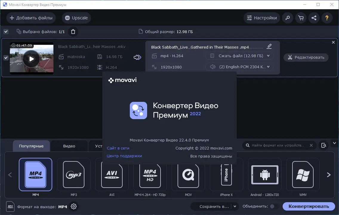 Movavi Video Converter — это мощное приложение, предназначенное для преобразования видео и аудиофайлов в нужные форматы без потери качества. Программа поддерживает широкий спектр медиаконтента, включая DVD, Flash, Full HD и 4K Ultra HD видео, что делает её универсальным решением для домашнего и профессионального использования. Она работает с такими форматами, как AVI, MP4, MKV, FLV, MOV, WebM, а также конвертирует аудиозаписи в MP3, FLAC, WMA и другие.