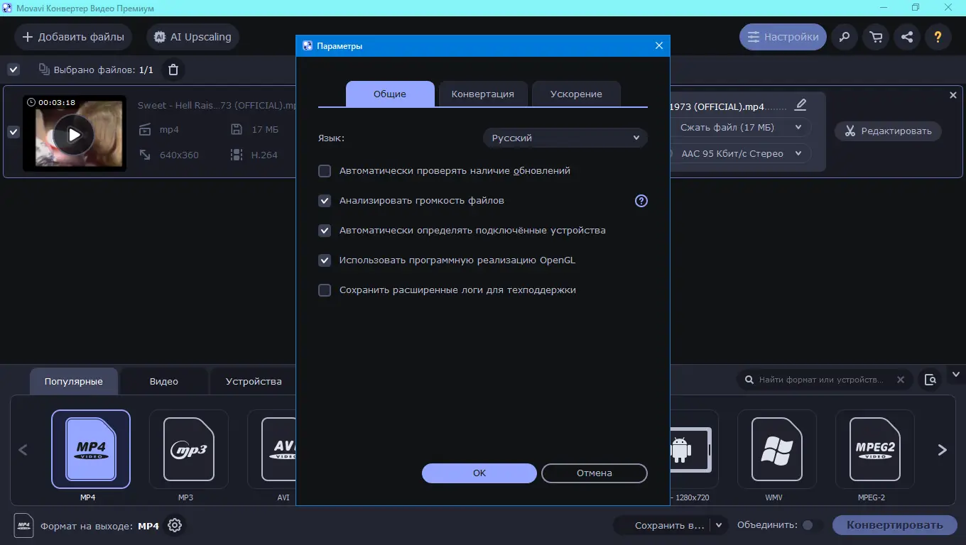 Movavi Video Converter сочетает в себе функциональность, скорость и удобство. Благодаря поддержке современных технологий ускорения, он демонстрирует высокую производительность даже на средних конфигурациях. Программа поддерживает ручную настройку битрейта, разрешения, частоты кадров и других параметров, что важно для профессионального использования. При этом новички могут использовать готовые шаблоны, которые автоматически подбирают оптимальные настройки под выбранное устройство.