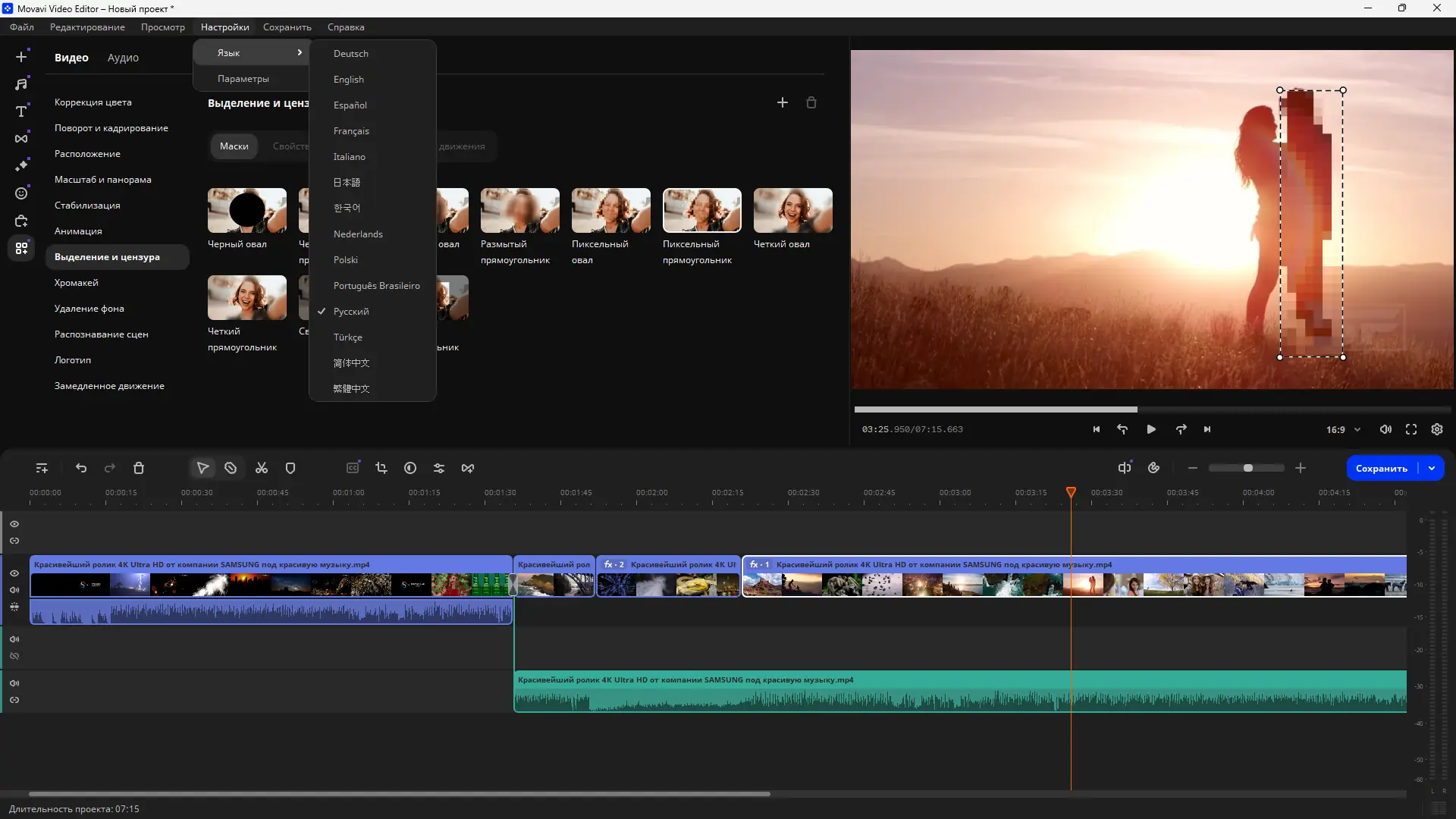 Работа с Movavi Video Editor