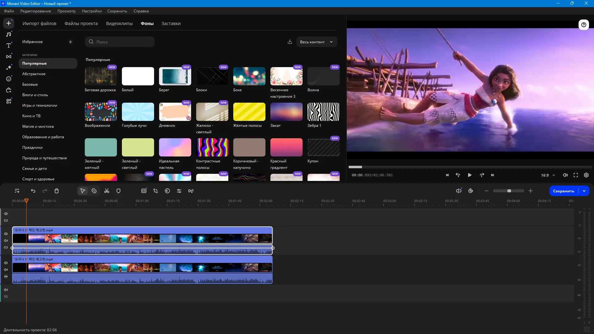 Работа с Movavi Video Editor