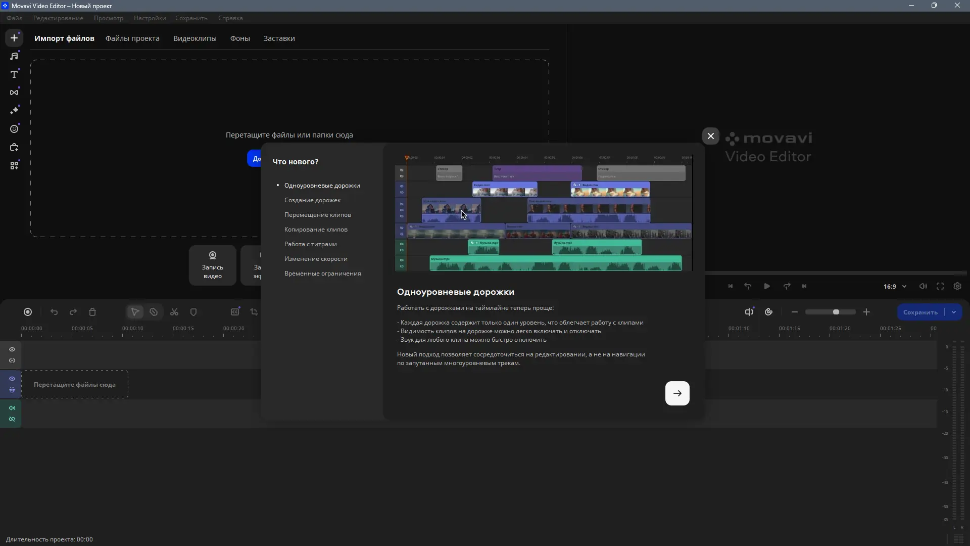 Movavi Video Editor — это мощный и интуитивно понятный видеоредактор, предназначенный для монтажа, обработки и публикации видео. Программа подходит как для новичков, так и для пользователей с опытом, предлагая широкий набор инструментов: от базовой нарезки до сложных визуальных эффектов. С её помощью можно редактировать видеозаписи, улучшать качество изображения, добавлять титры, музыку и эффекты, а также экспортировать результат в нужный формат.