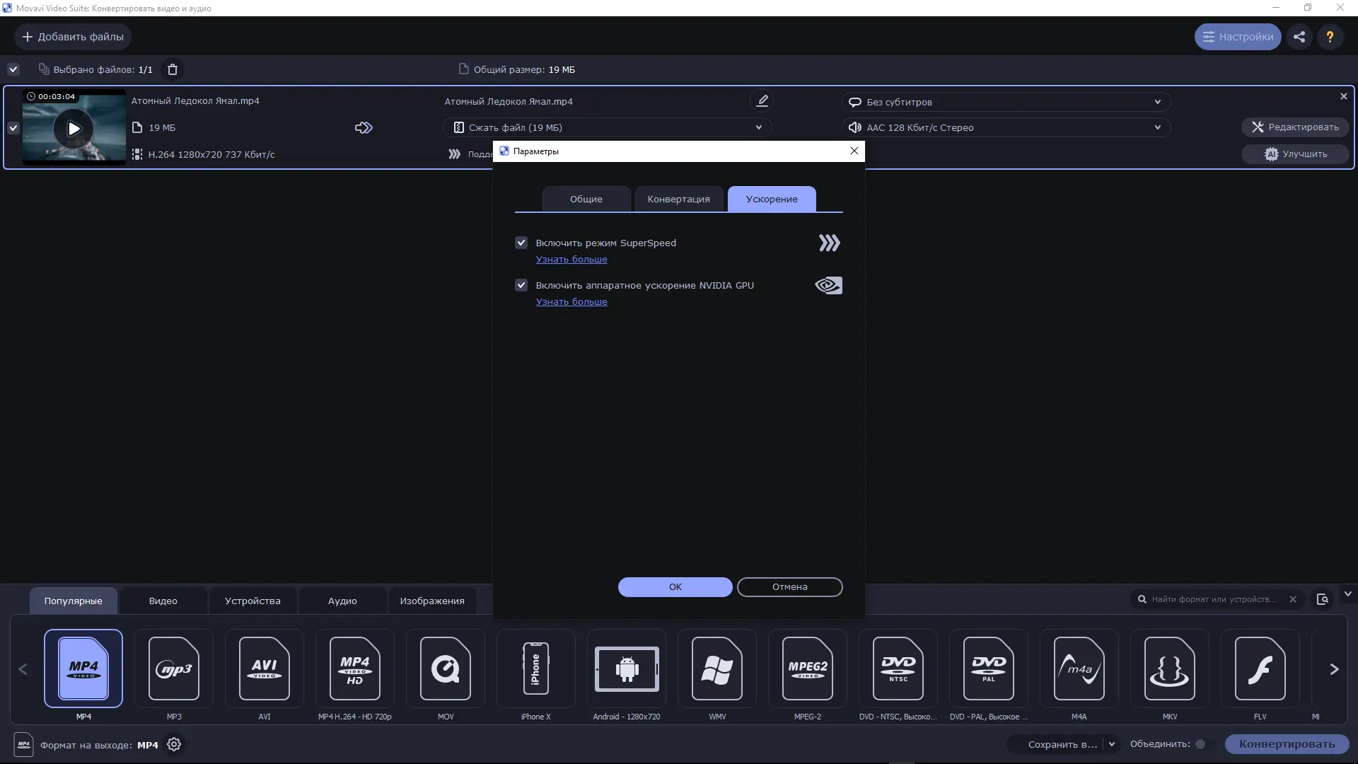 - Быстрый конвертер, поддерживающий более 180 форматов