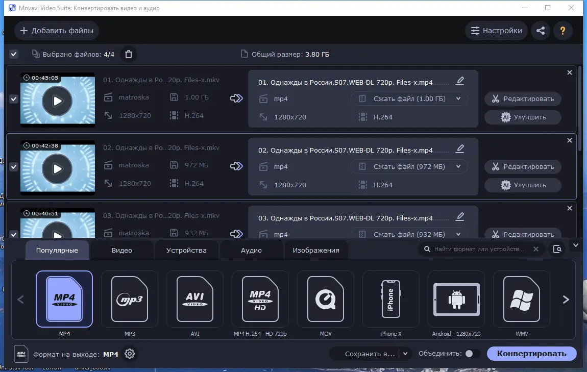 - Позволяет конвертировать медиафайлы в более чем 180 форматов для совместимости с любыми устройствами