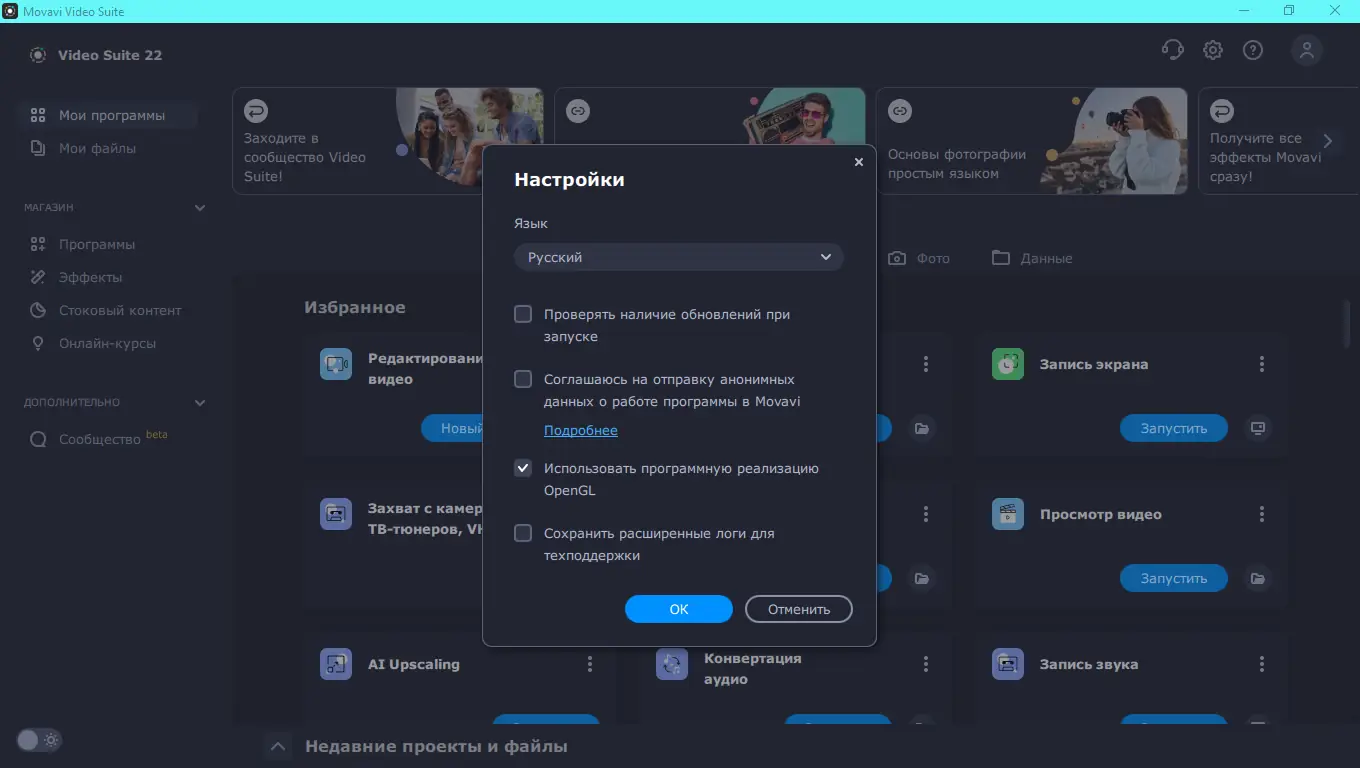 Работа с Movavi Video Suite