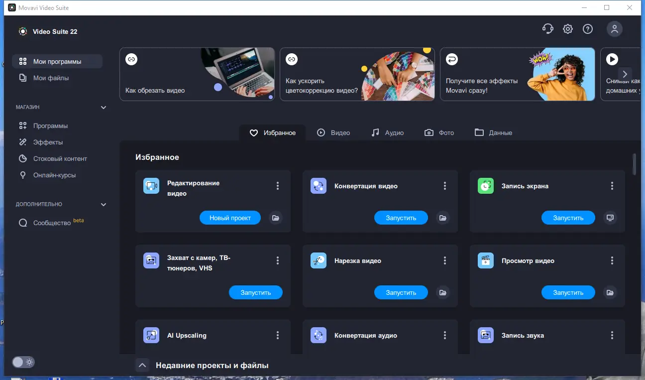 Movavi Video Suite — это не просто видеоредактор, а целый набор инструментов для полного цикла создания видео.
