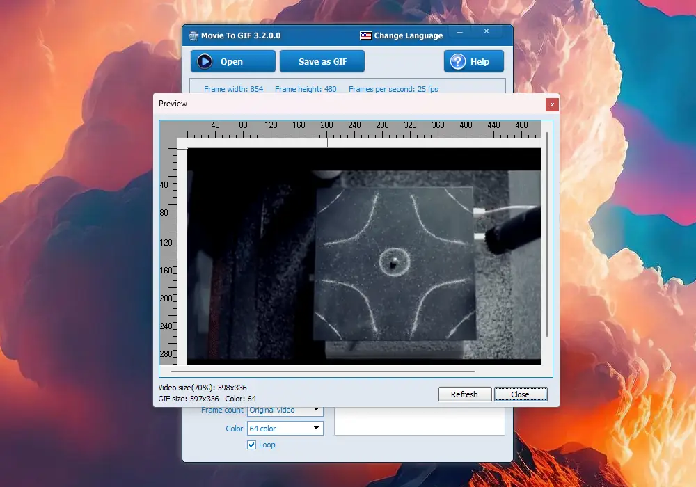 Movie To GIF — это легковесное приложение для преобразования видеофрагментов в анимированные GIF-изображения. Программа поддерживает множество форматов, позволяет настраивать частоту кадров, размеры и цветовую палитру, а также добавлять водяные знаки. Интуитивный интерфейс делает процесс конвертации доступным даже новичкам.