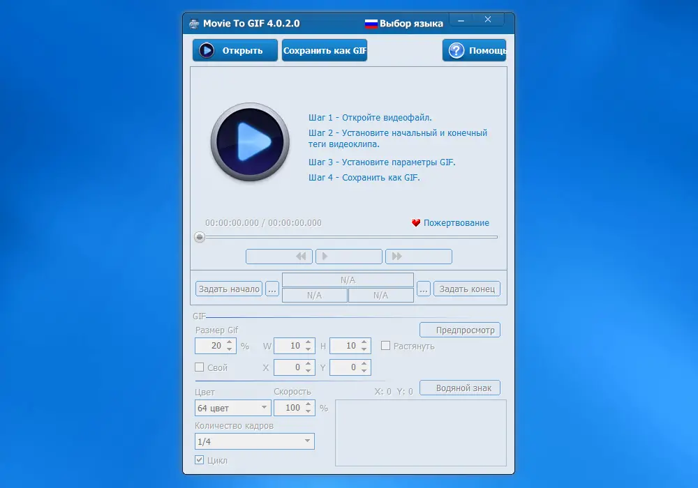 Movie To GIF доступна для скачивания в стабильной и портативной версиях. Программа распространяется как бесплатное программное обеспечение и не требует активации. Поддержка русского языка и совместимость с современными версиями Windows делают её удобной для широкого круга пользователей.