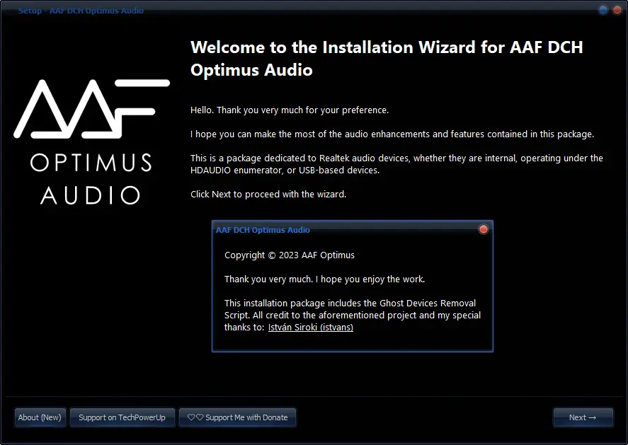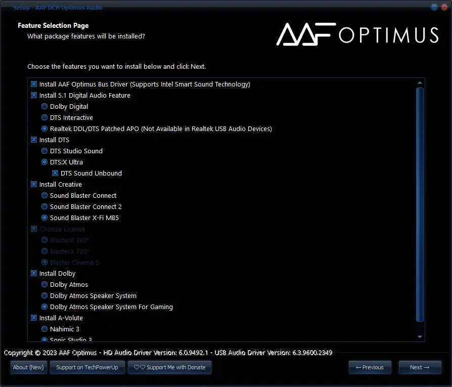 AAF DCH Optimus Audio — модифицированный аудиодрайвер для систем с чипами Realtek, объединяющий множество технологий улучшения звука. Программа предоставляет доступ к продвинутым аудиоэффектам, включая Dolby Atmos, DTS и Nahimic, обеспечивая высокое качество воспроизведения в музыке, фильмах и играх.