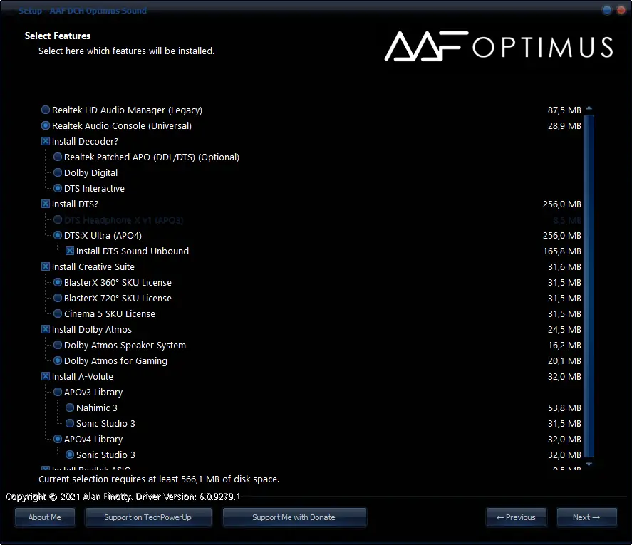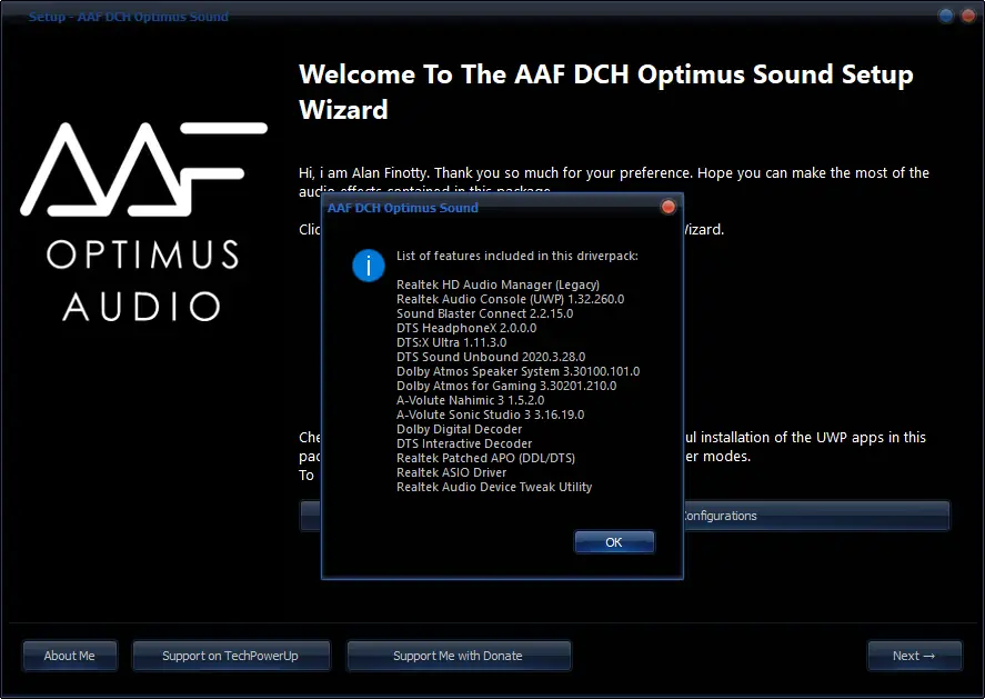 AAF DCH Optimus Sound — это модифицированный аудиодрайвер для материнских плат с чипом Realtek, объединяющий в одном пакете передовые технологии звуковой обработки. Программа обеспечивает высокое качество звучания в музыке, фильмах и играх за счёт интеграции нескольких аудиоусилителей и контроллеров. Поддержка DTS, Dolby Atmos, Nahimic и других технологий делает этот драйвер универсальным решением для пользователей, стремящихся к идеальному звуку.