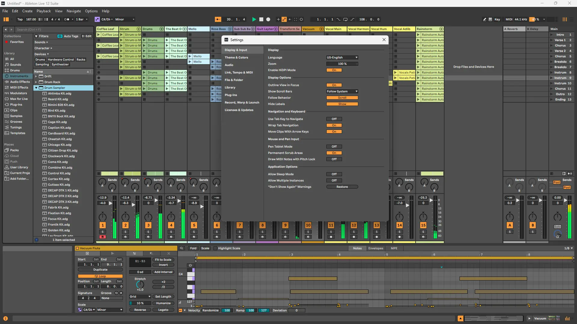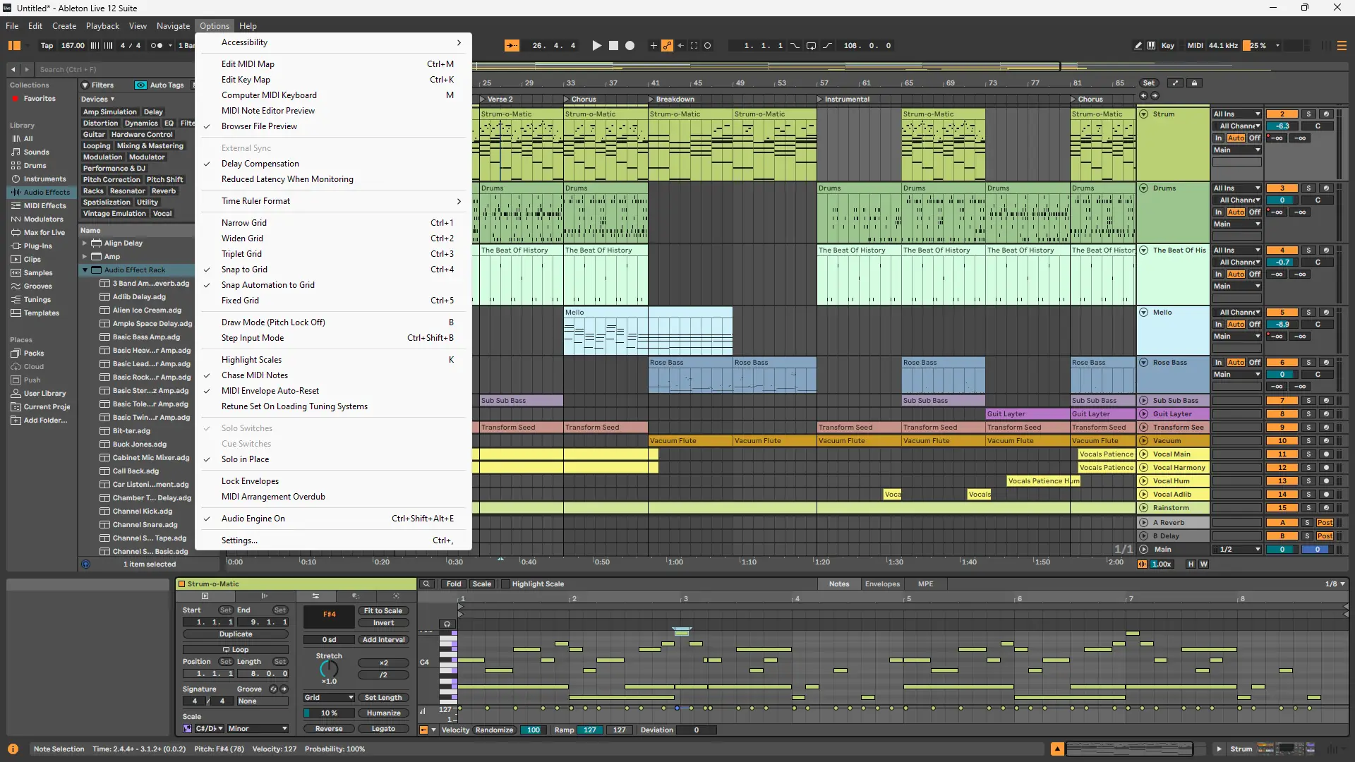 Программа предлагает двойной рабочий режим: Session View и Arrangement View, что делает её универсальной для разных стадий музыкального производства. Первый режим идеален для импровизации и живых выступлений, позволяя запускать клипы и петли в любом порядке, сохраняя синхронность. Второй режим служит для линейного монтажа и финального редактирования композиций, обеспечивая точный контроль над каждым элементом.
