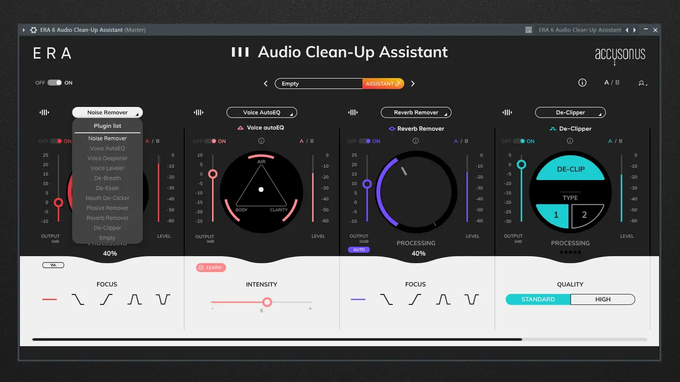 accusonus — это инновационный набор аудиоплагинов, разработанных для быстрой и качественной обработки звука. Программное обеспечение позволяет эффективно устранять шумы, реверберацию, клиппинг и другие артефакты, обеспечивая профессиональный результат без необходимости глубокой ручной настройки. Решение идеально подходит для работы с диалогами, подкастами, музыкальными проектами и видеопродакшном.