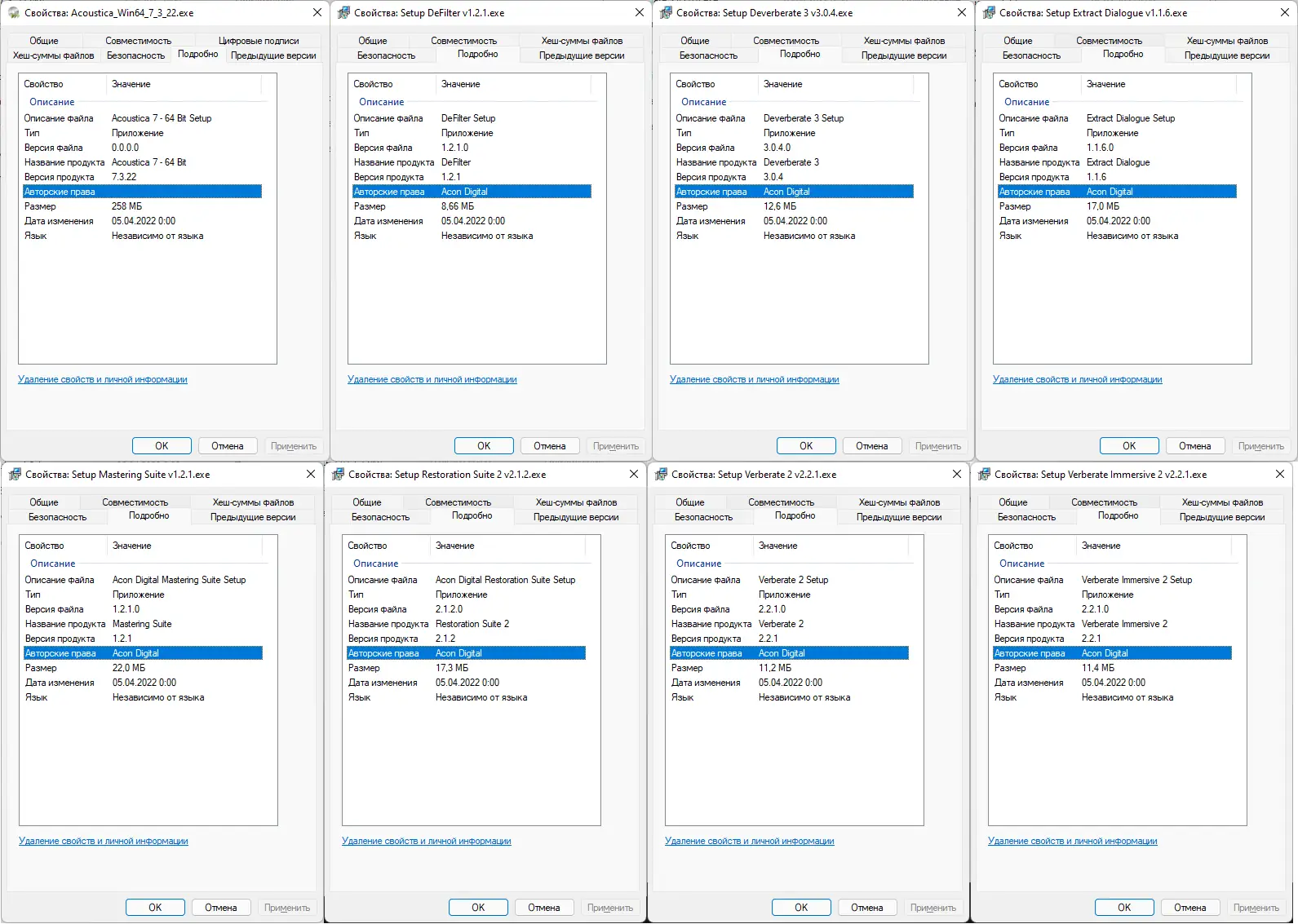 Acon Digital Collection представляет собой комплексное программное обеспечение, предназначенное для высокоточной работы с аудиоданными. В состав входит полнофункциональный аудиоредактор и серия специализированных плагинов, созданных для решения узкоспециализированных задач — от подавления шумов до тонкой коррекции реверберации и эквализации. Архитектура решения позволяет использовать его как в автономном режиме, так и в составе DAW-систем, обеспечивая совместимость с форматами VST и DirectX.