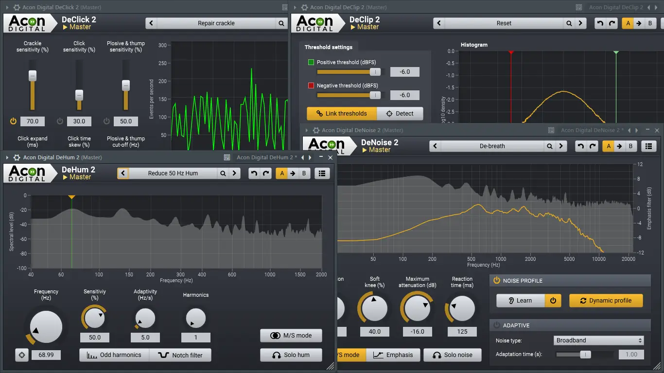 Acon Digital Collection — это мощный аудио-пакет, объединяющий профессиональный редактор Acoustica Premium и набор инновационных плагинов для обработки, мастеринга и реставрации звука. Решение подходит как для студийных инженеров, так и для звукорежиссёров, работающих с полевыми записями, подкастами или архивными материалами.
