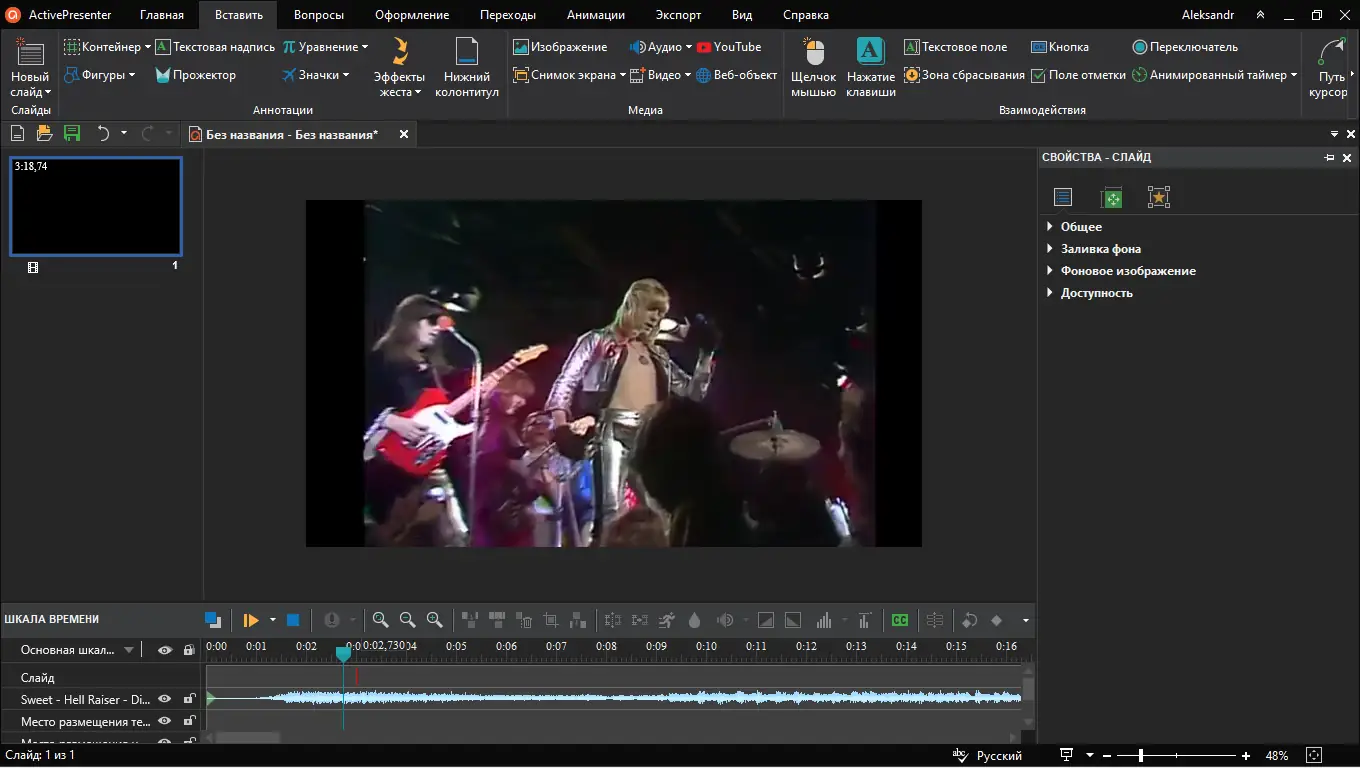 ActivePresenter сочетает в себе мощные функции редактирования видео и гибкие возможности экспорта, что делает его универсальным решением для создания мультимедийного контента. Особенно ценится встроенная поддержка интерактивных элементов и совместимость с системами дистанционного обучения. Программа оптимизирована под работу с обучающими материалами и позволяет обходиться без дополнительных видеоредакторов. В то же время, новичкам может потребоваться время на освоение интерфейса и всех возможностей инструментов. Тем не менее, наличие русского языка и продуманной структуры меню упрощает вход в работу.