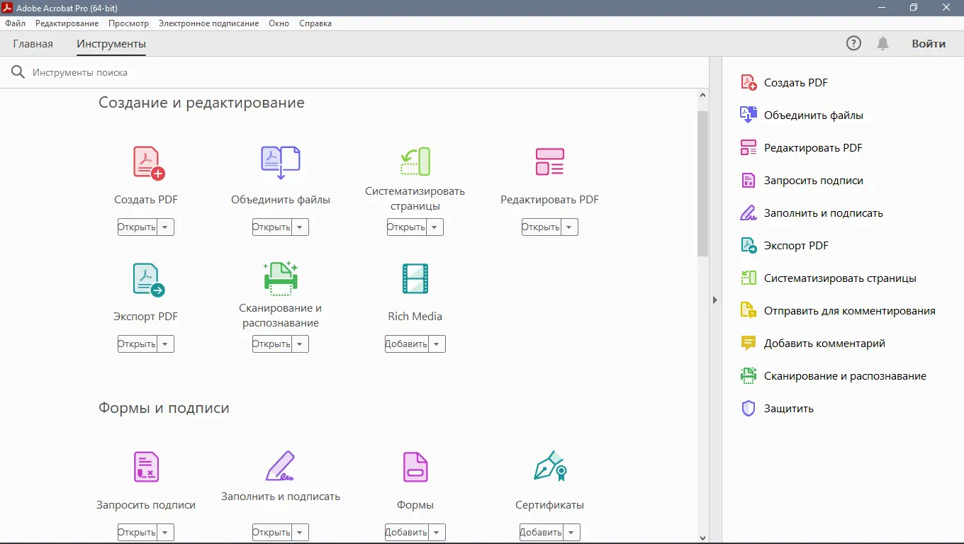 Adobe Acrobat — это универсальный инструмент для работы с PDF, разработанный компанией Adobe. Он позволяет не только просматривать файлы, но и редактировать, объединять, защищать и подписывать их. Версия pro предлагает расширенный функционал по сравнению с базовыми читалками, включая продвинутые возможности экспорта и интеграции с другими приложениями. Программа активно используется в деловой среде благодаря своей надёжности и совместимости.