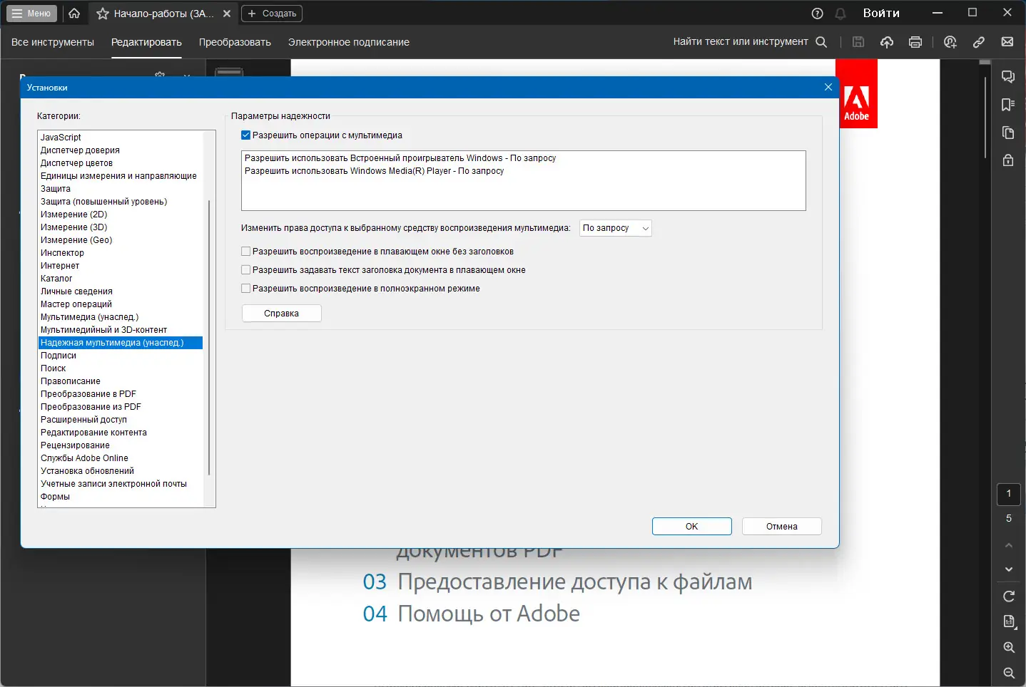 Работа с Adobe Acrobat