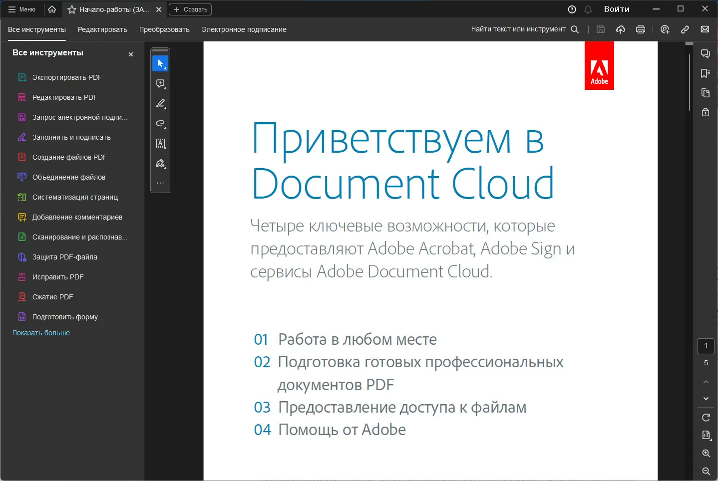 Adobe Acrobat представляет собой профессиональное решение для создания и управления PDF-документами. Программа сочетает в себе функции редактора, конвертера и средства для электронного документооборота. Она поддерживает работу с различными форматами, включая сканированные документы, офисные файлы и электронные формы.