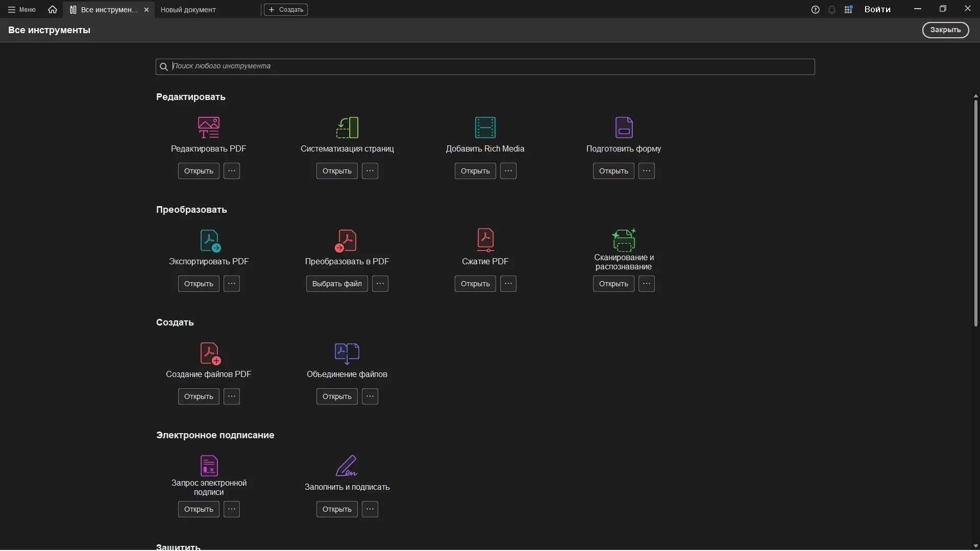 - Развитые функции редактирования и конвертации, включая поддержку OCR и создания форм.