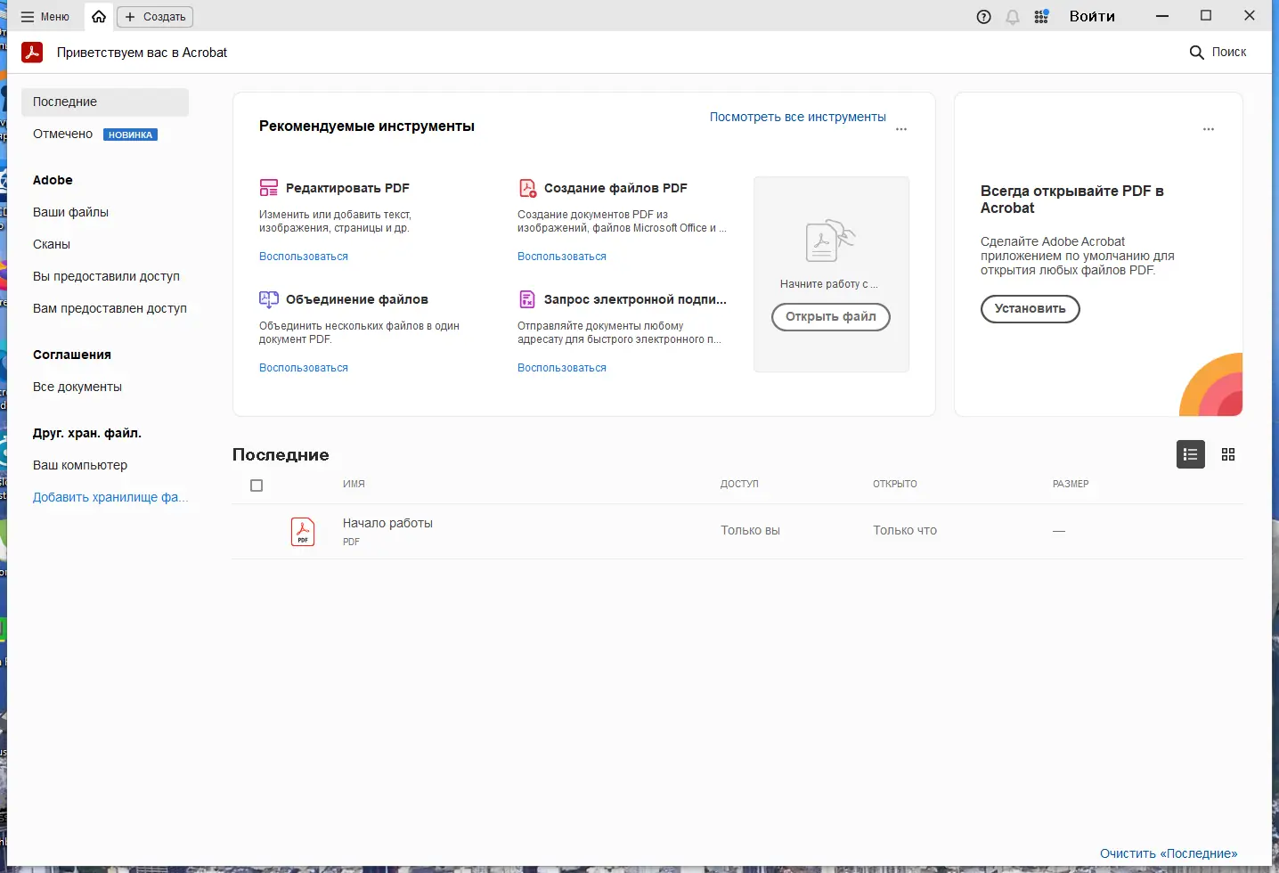 Adobe Acrobat — это профессиональное решение для работы с PDF-документами, позволяющее создавать, редактировать, объединять и защищать файлы, а также добавлять электронные подписи и заполнять формы на любом устройстве. Программа поддерживает облачный доступ и синхронизацию через Document Cloud, обеспечивая удобство при работе с документами в разных форматах.
