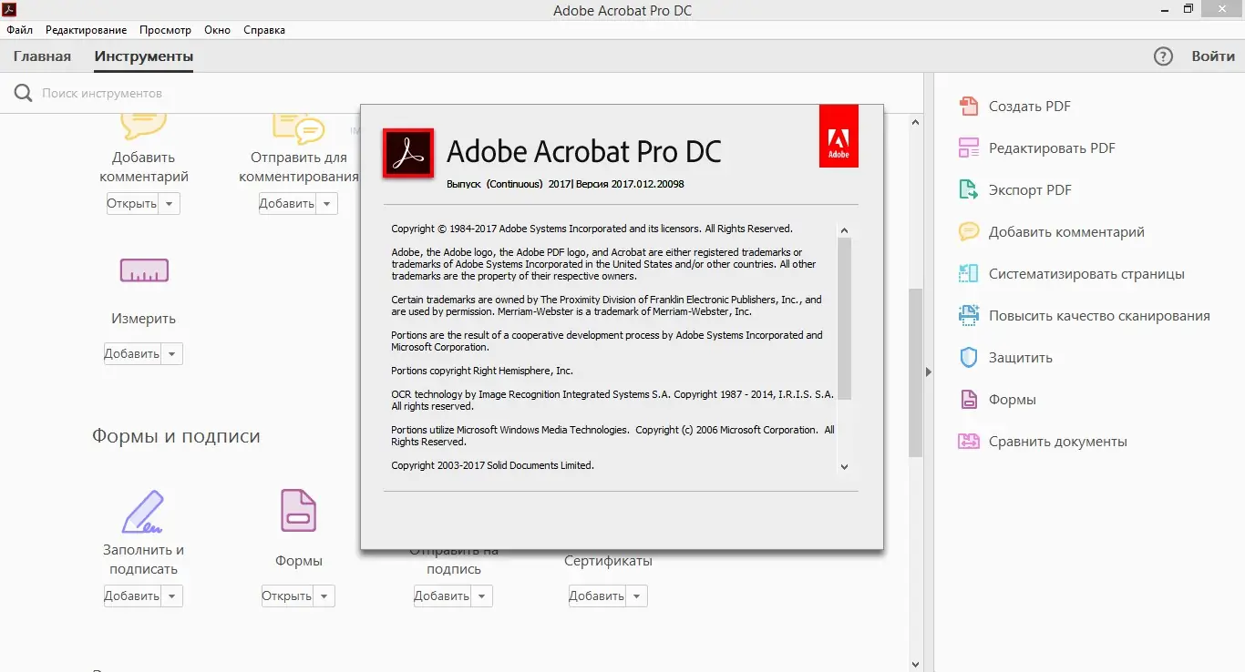 Adobe Acrobat — это передовое программное обеспечение для создания, редактирования и управления файлами PDF. Решение сочетает в себе мощные инструменты настольного приложения и мобильных сервисов, обеспечивая полный контроль над документами в любой точке мира.