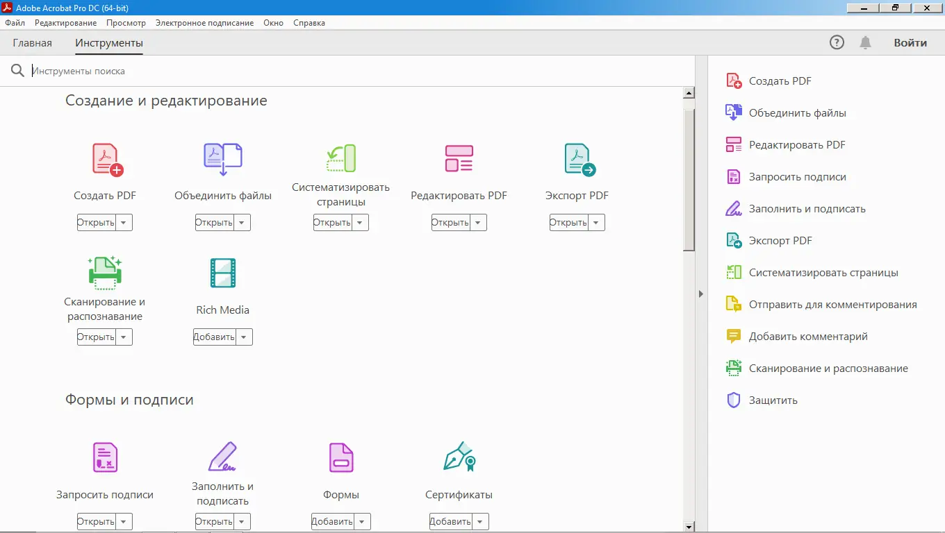 Adobe Acrobat DC демонстрирует высокую производительность и стабильность при работе с большими документами, поддерживает широкий спектр функций, необходимых как для частных лиц, так и для корпоративных пользователей. Интерфейс программы адаптирован под сенсорные устройства, что упрощает взаимодействие на планшетах и смартфонах. В то же время, стоимость лицензии может быть высокой для отдельных пользователей, особенно если требуется только базовая функциональность. Также возможны сложности с активацией при использовании неофициальных сборок, что требует внимательного подхода к установке.