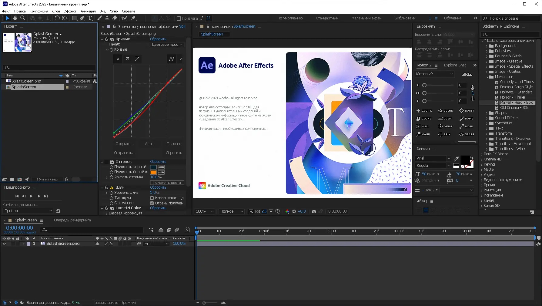- Мощный инструментарий для создания визуальных эффектов и анимации любого уровня сложности.