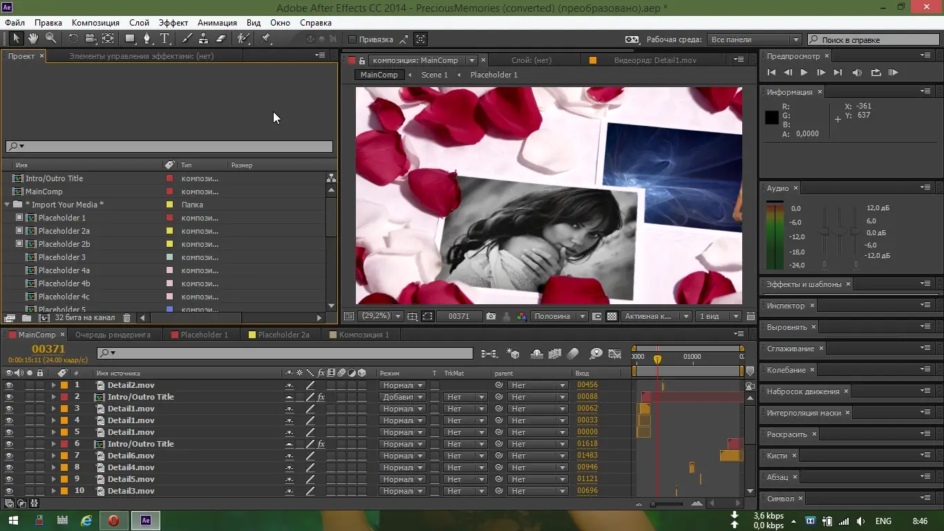 Работа в Adobe After Effects начинается с создания новой композиции, в которую импортируются видеоклипы, изображения, аудио и векторная графика. Каждый элемент добавляется на отдельный слой, что позволяет независимо управлять его положением, масштабом, прозрачностью и другими параметрами. Анимация создаётся с помощью ключевых кадров, устанавливаемых на временной шкале, где можно настраивать плавность изменений и тип интерполяции.